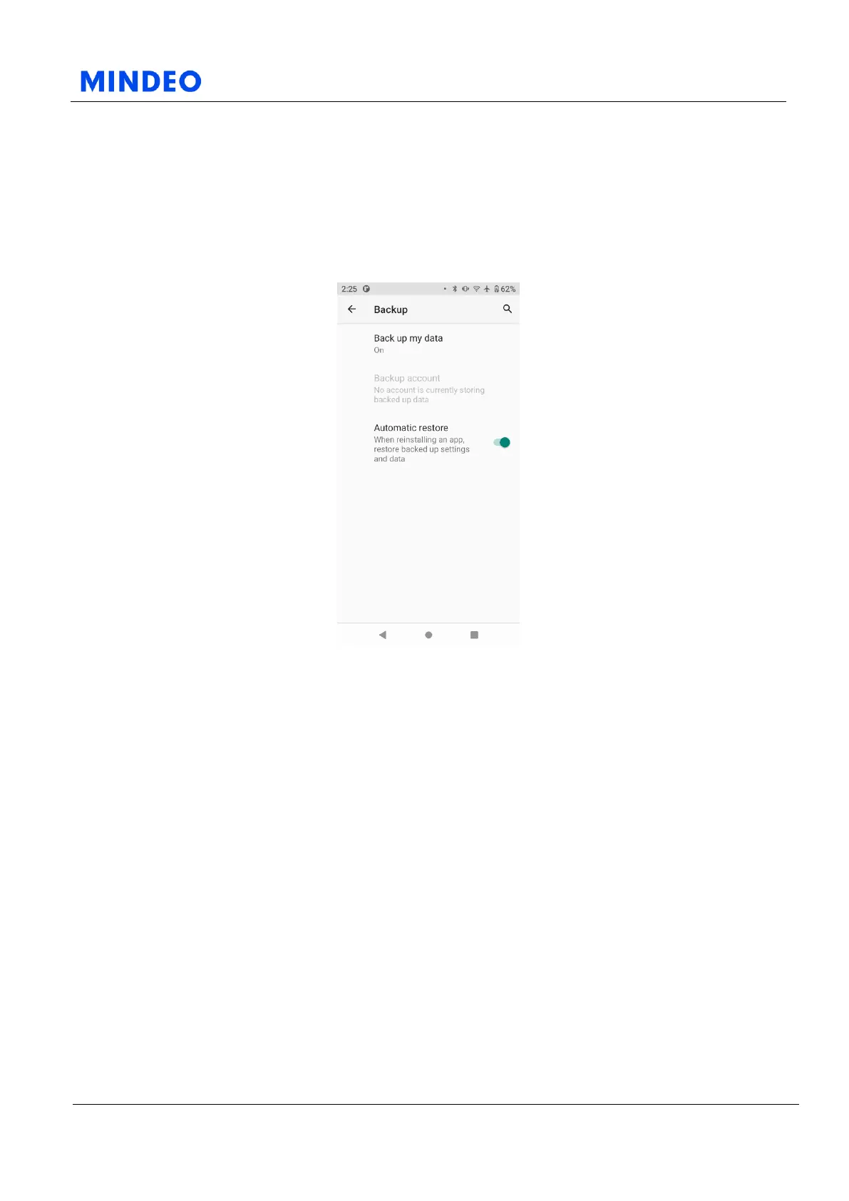 to Google servers. You need to set up your Google account in 6.11 Accounts before you can backup.