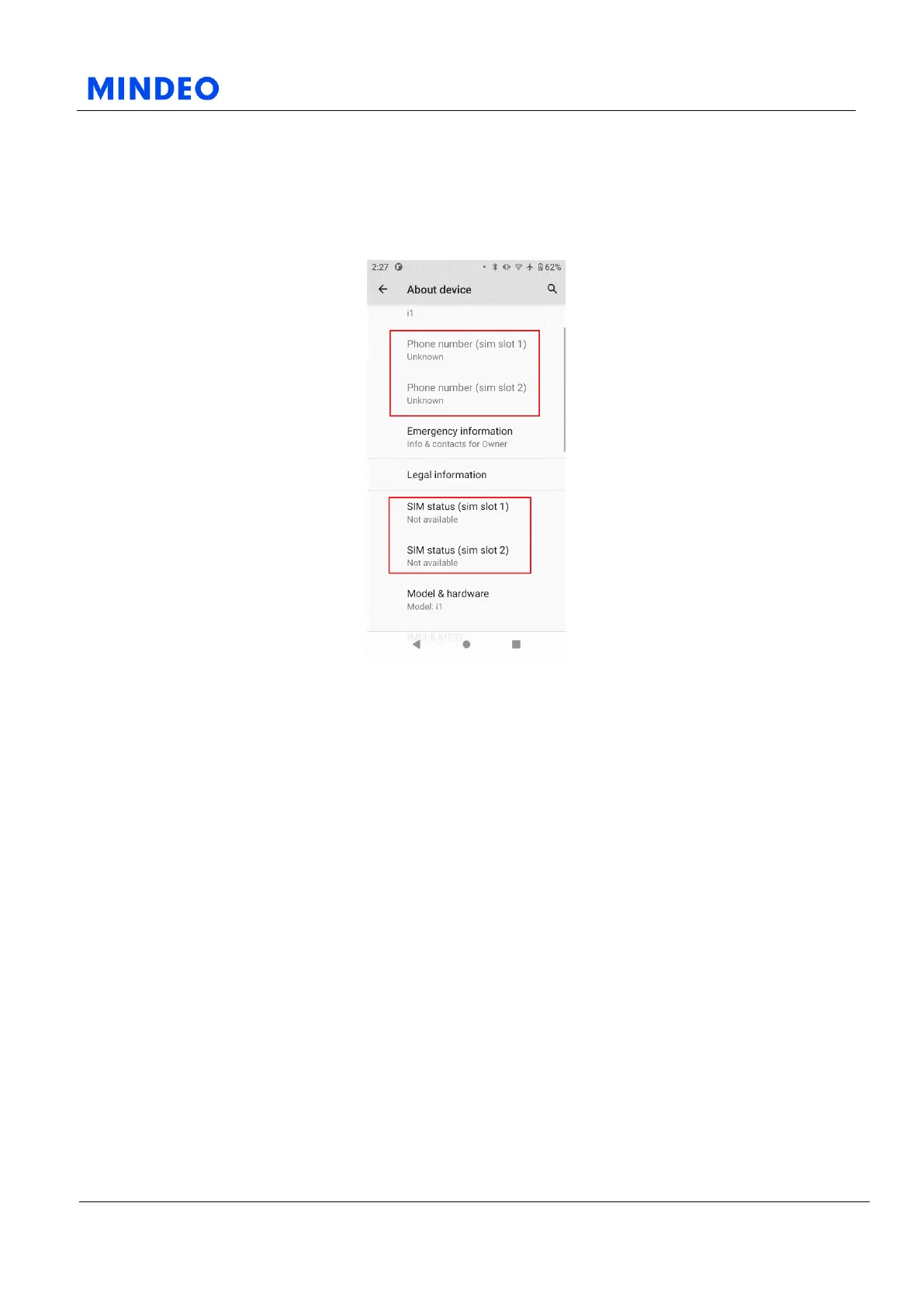 This page shows the phone number and SIM card status of the SIM cards in the SIM card slot 1 and SIM