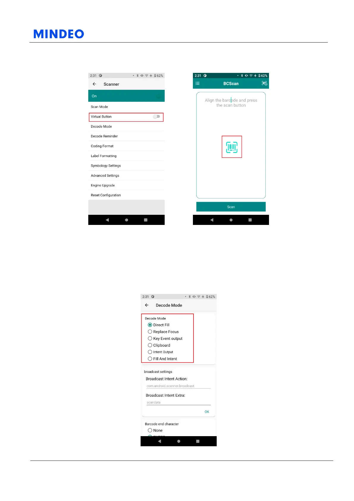 Mindeo M40 - Virtual Button; Decode Mode