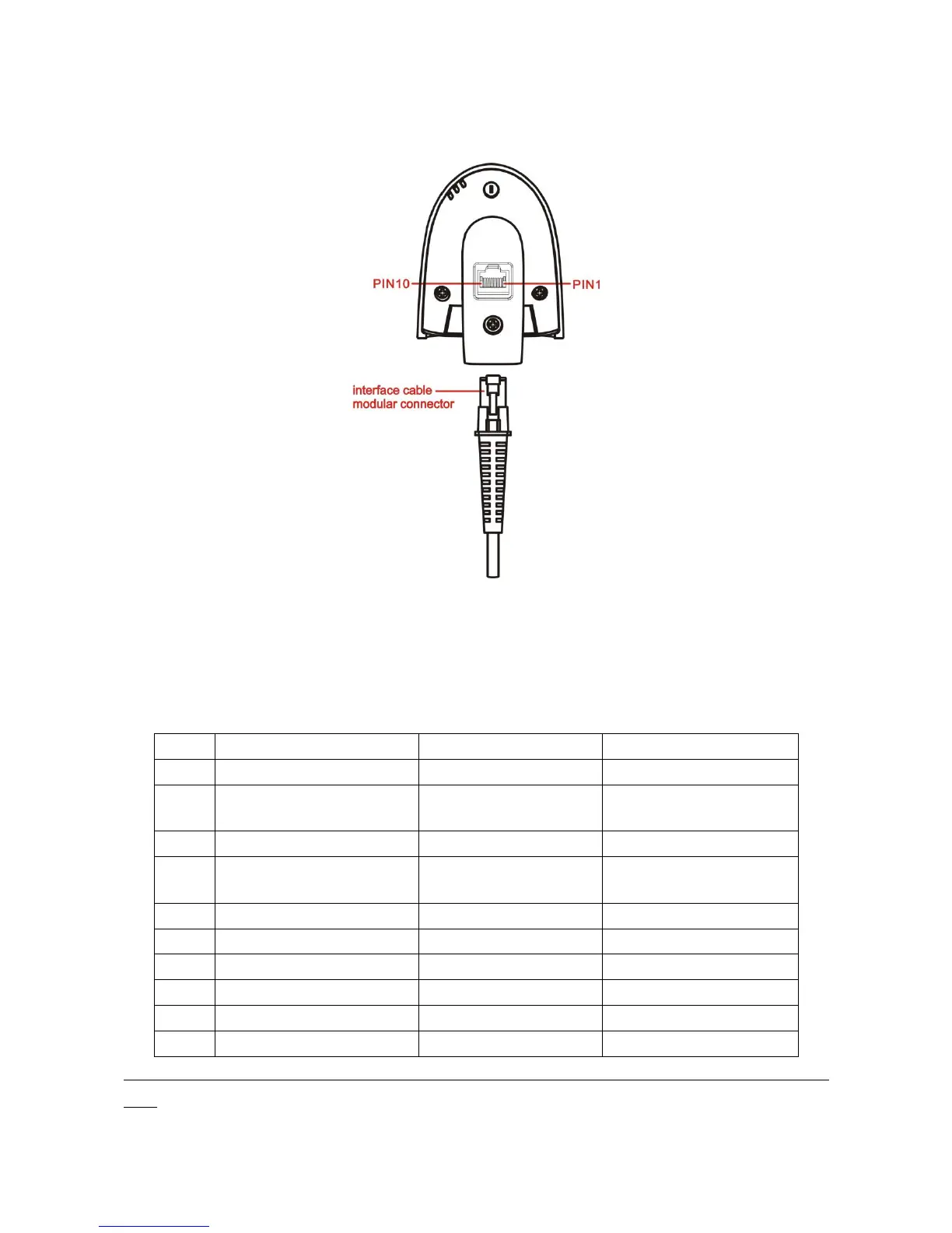 The pin-outs descriptions in Table 2-1 apply to the cable connector on the scanner and are for reference