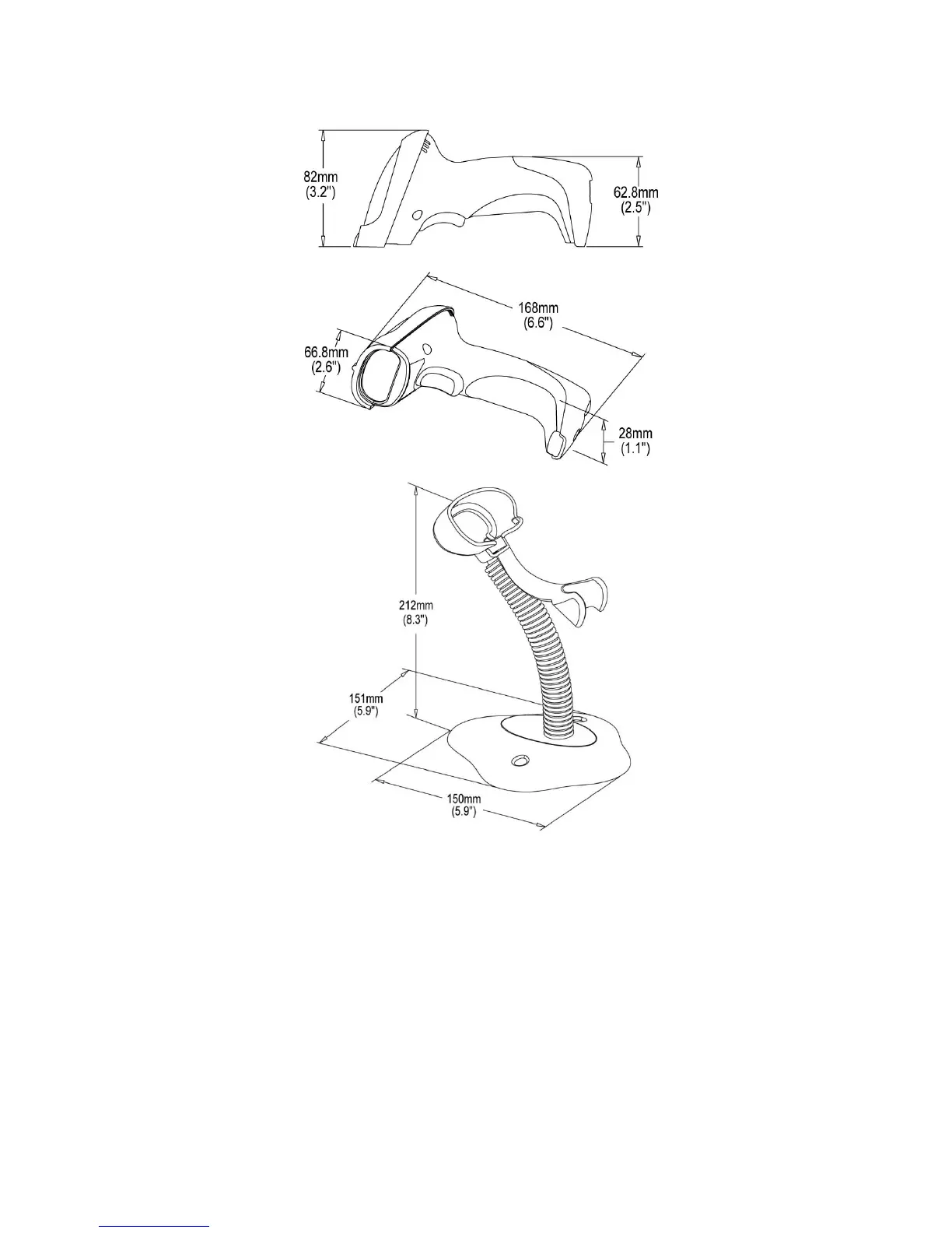 Figure 2-2 Dimensions of scanner