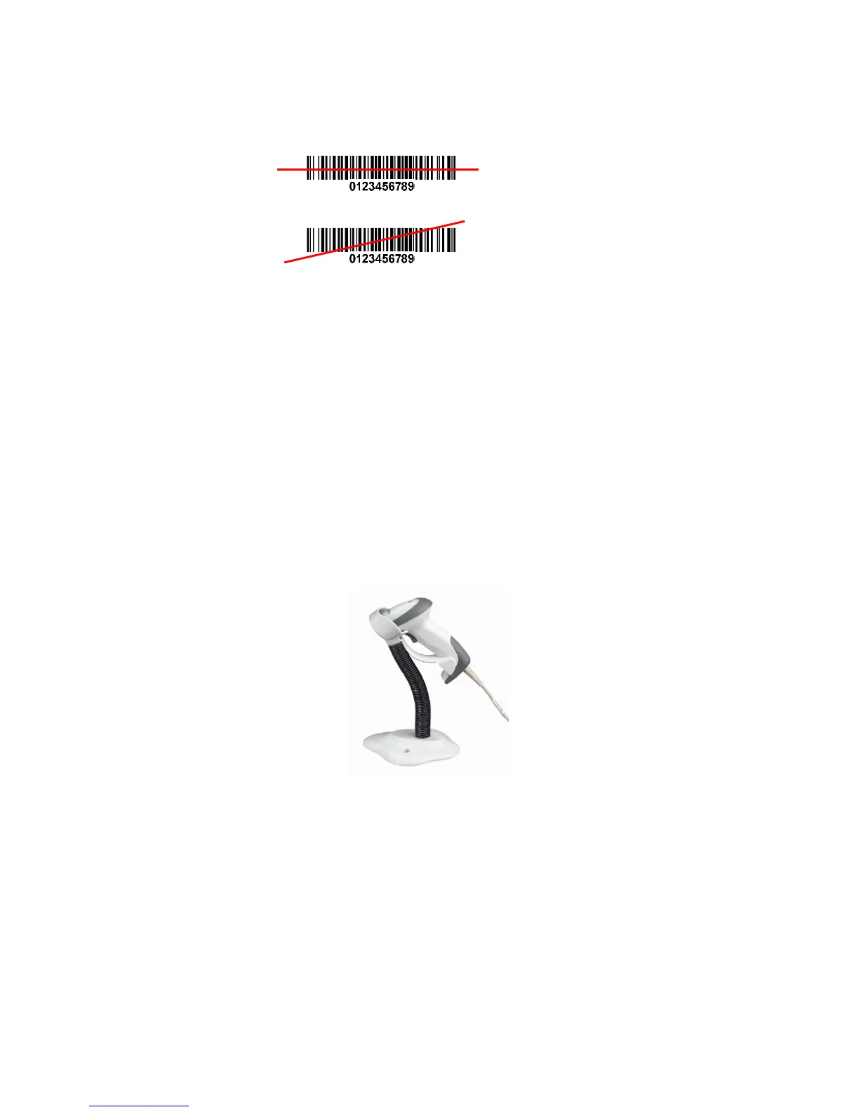 2. To scan a bar code, present the bar code and ensure the scan line crosses every bar and space of