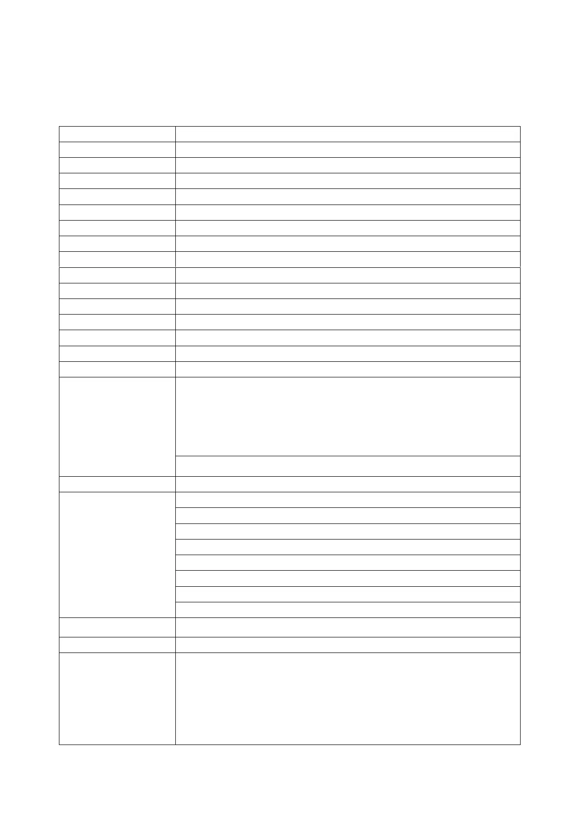 Table 1-1 Technical specifications