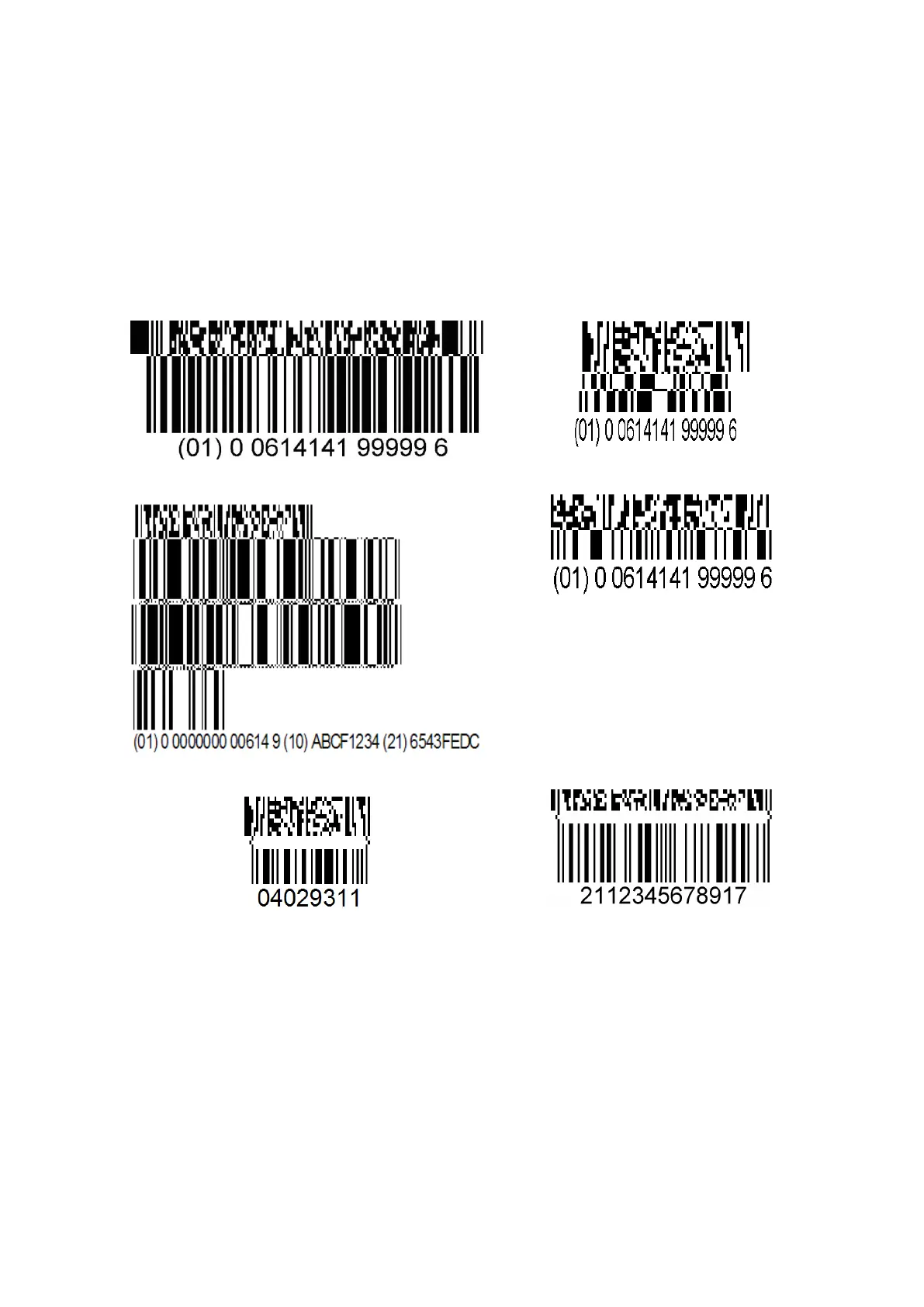 The linear component will be a traditional symbol of types: GS-128, EAN-8, EAN-13, UPC-A, UPC-E or