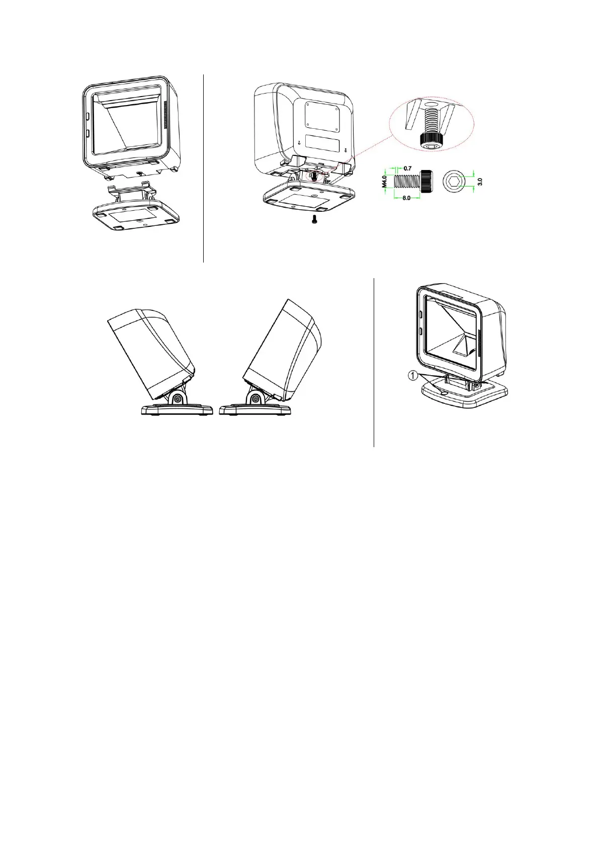plastic stopper on the stand (see ①), then fix the stand with a table with appropriate screws.