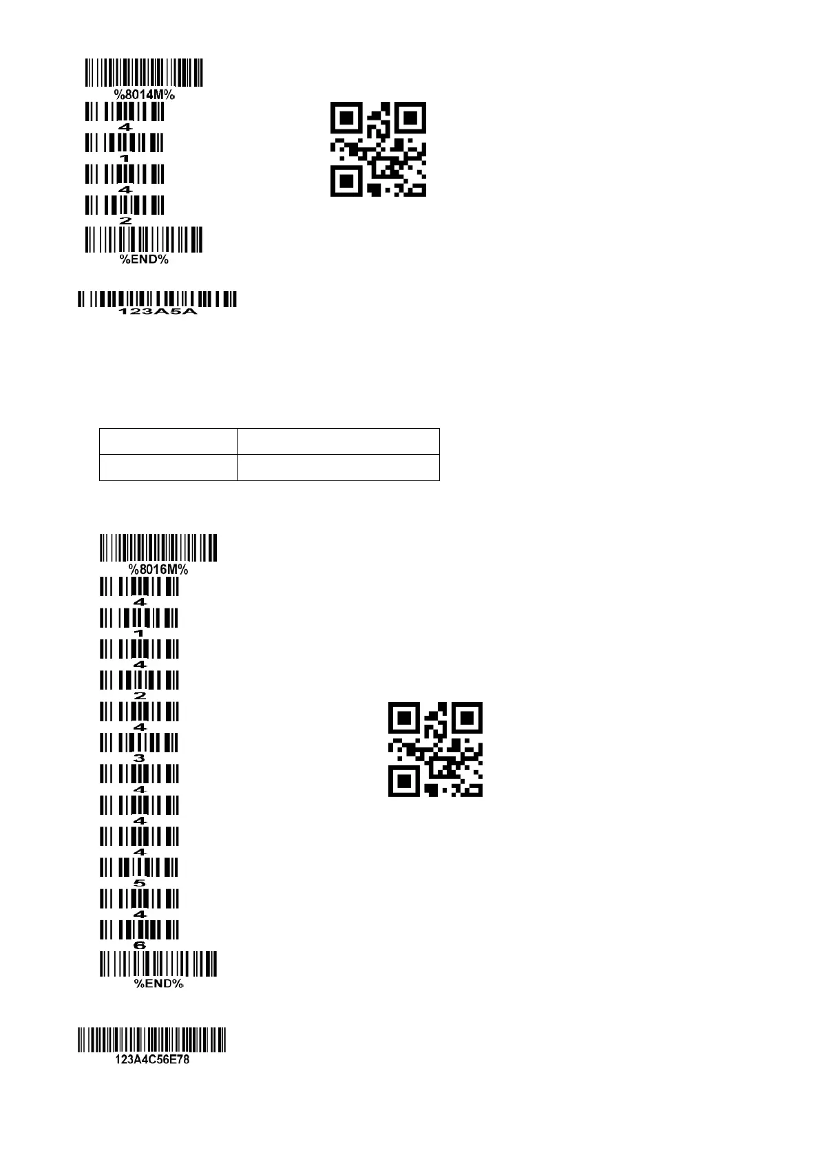 Steps: scan the following barcodes in order. The ASCII value for A is 41, for B is 42, for C is 43, for