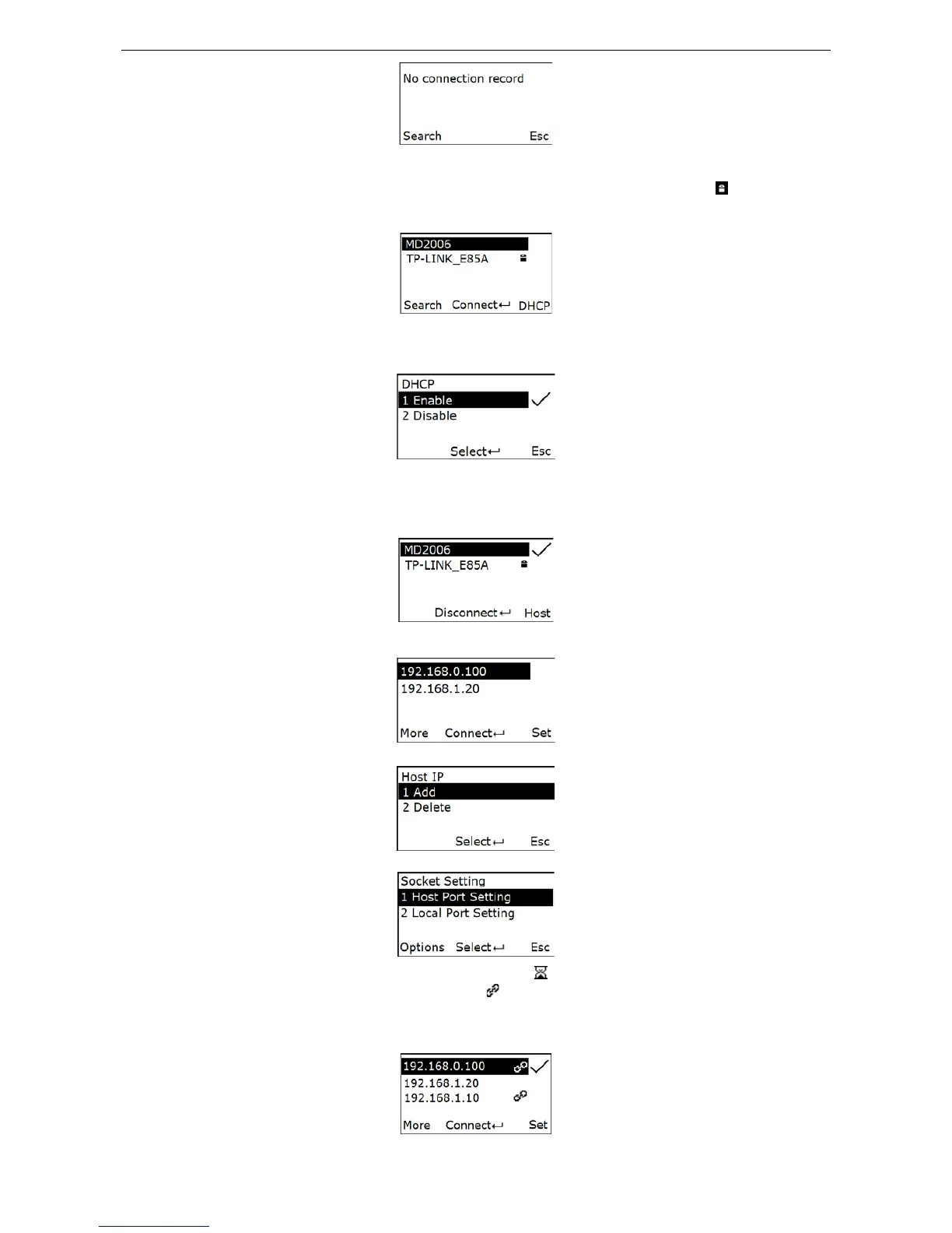 whether enable DHCP, and press the Scan/Select Key to confirm. If disable the DHCP, you should