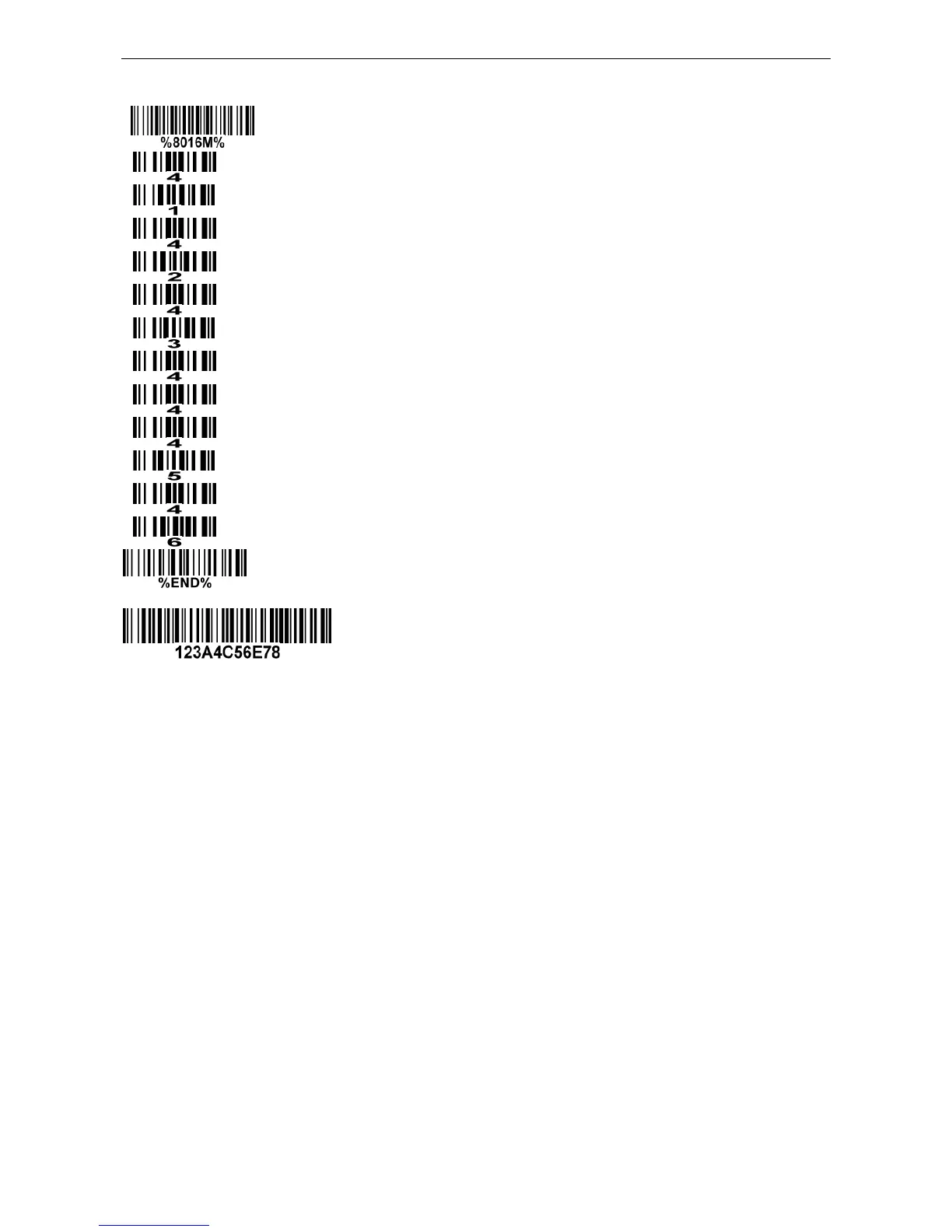 Steps: scan the following barcodes in order. The ASCII value for “A” is 41, for “B” is 42, for “C” is 43, for
