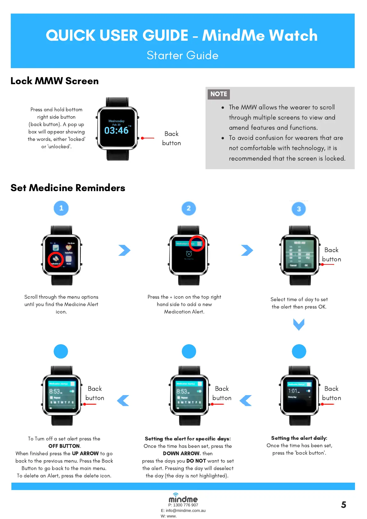 QUICK USER GUIDE - MindMe Watch
