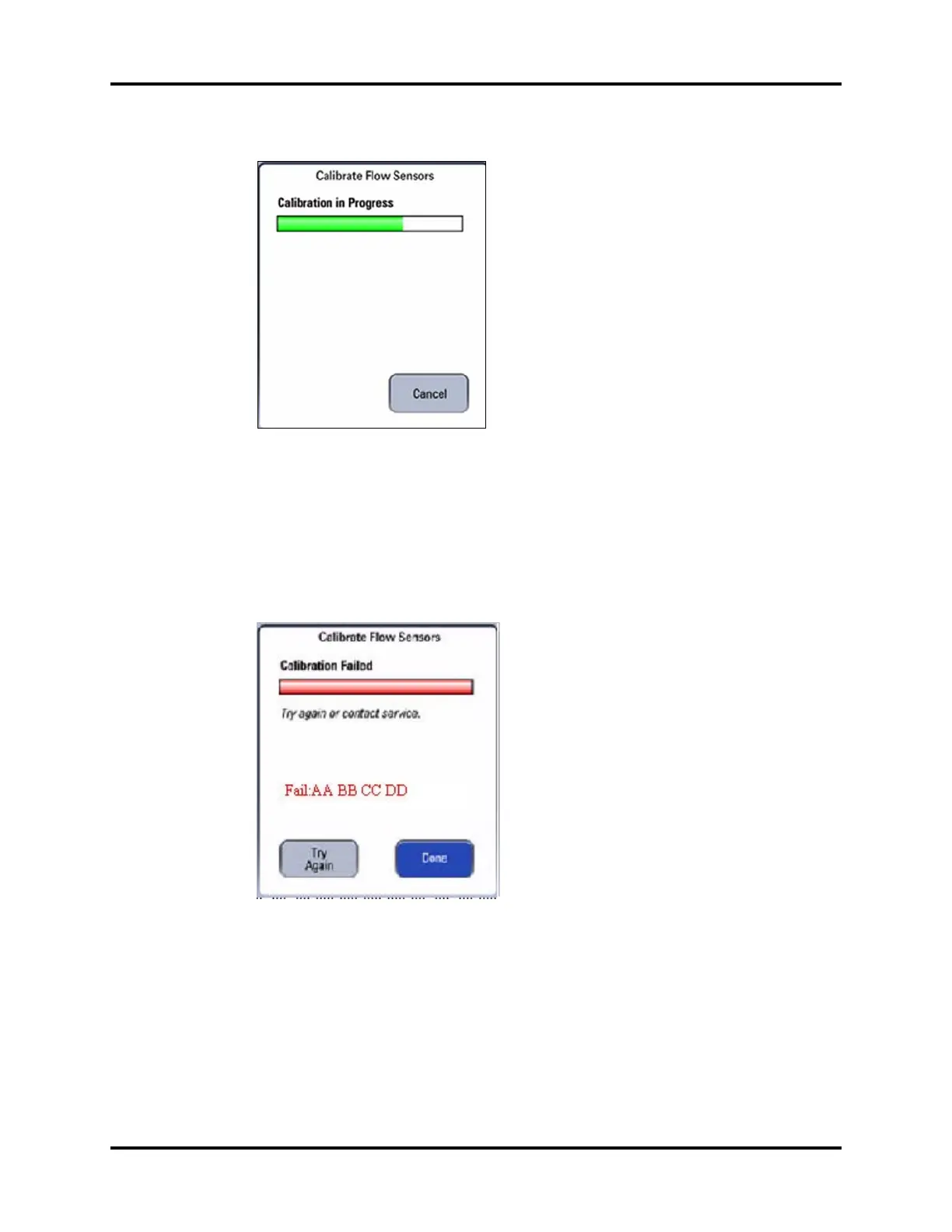 • The screen shown below is displayed if the flow sensor calibration has failed. When the