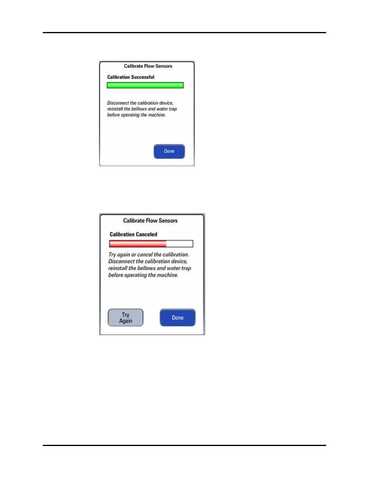 16. The screen shown below is displayed if the ongoing calibration is canceled. Select Try Again to