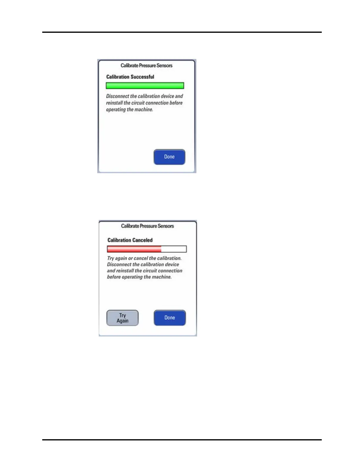 11. The screen shown below is displayed if the ongoing calibration is canceled. Select Try Again to