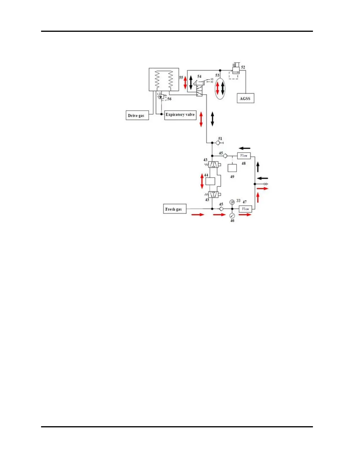 red arrows indicate the direction of the anesthetic gas. Currently, this path is integrated into the main
