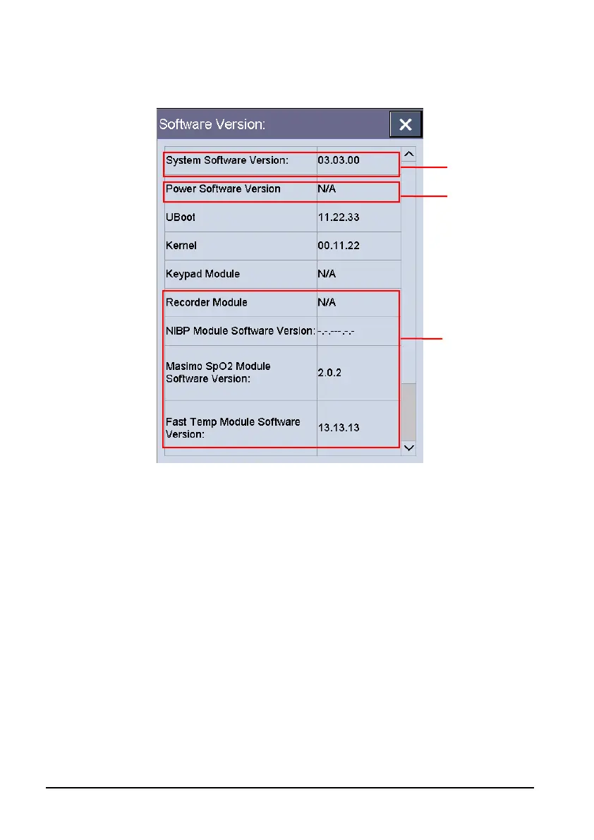 Selecting the [Software Version >>] will show software version information, as shown
