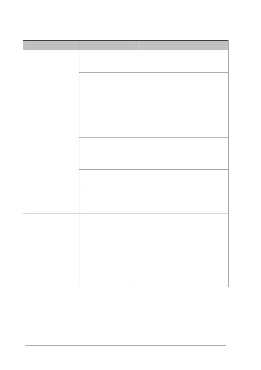 Symptoms Possible Cause Troubleshooting