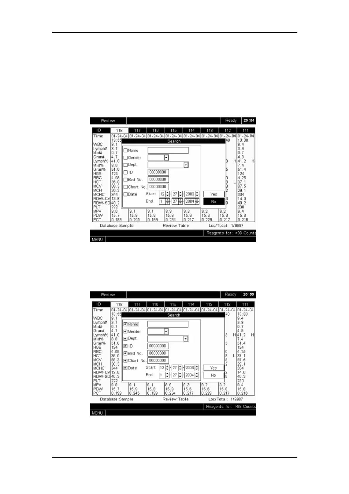 At the sample table review screen, press [F4] to enter the “Search” window, as Figure 7-27