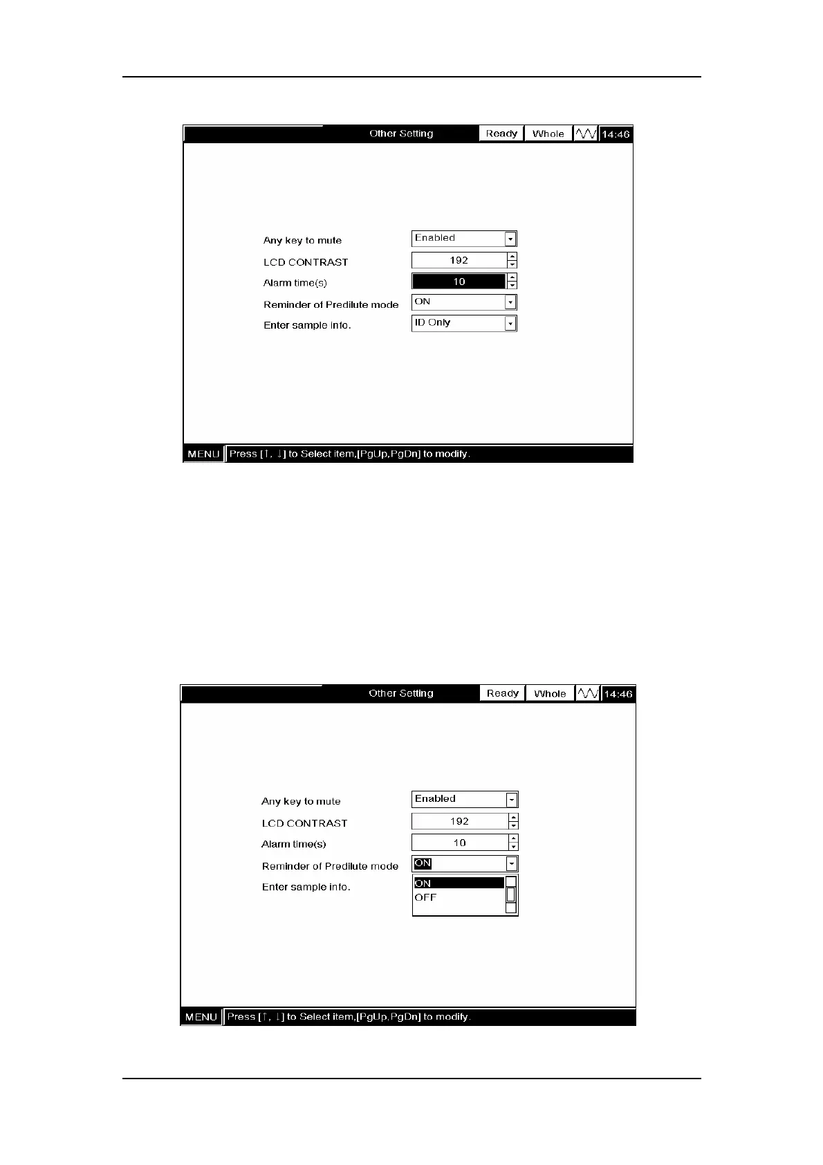 To enable (or disable) the “Reminder of Predilute mode” function, SELECT “ON”(or “OFF”)