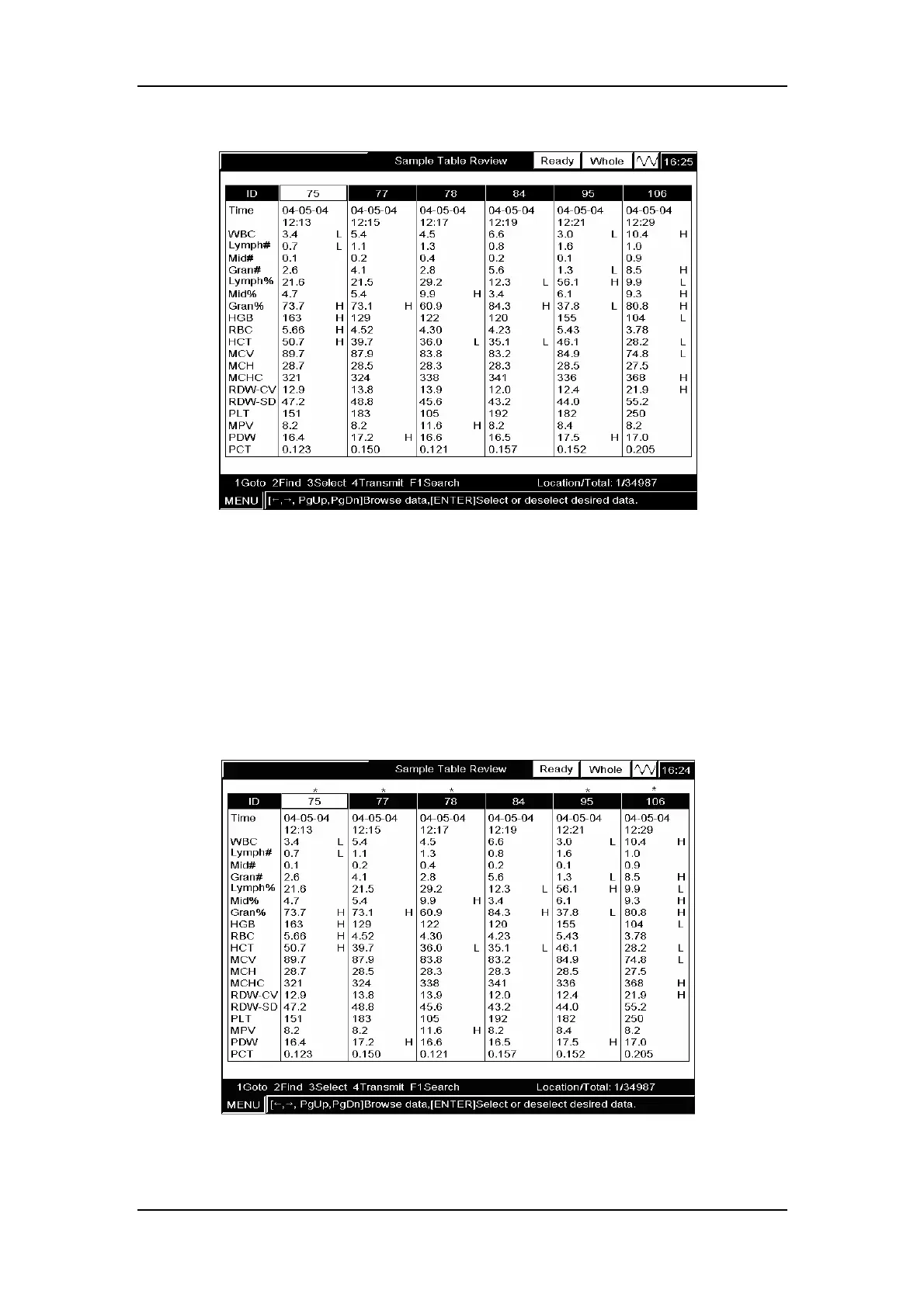 Example3: To select the sample results of locations 1 to 5 and 7 to 8, follow the procedure