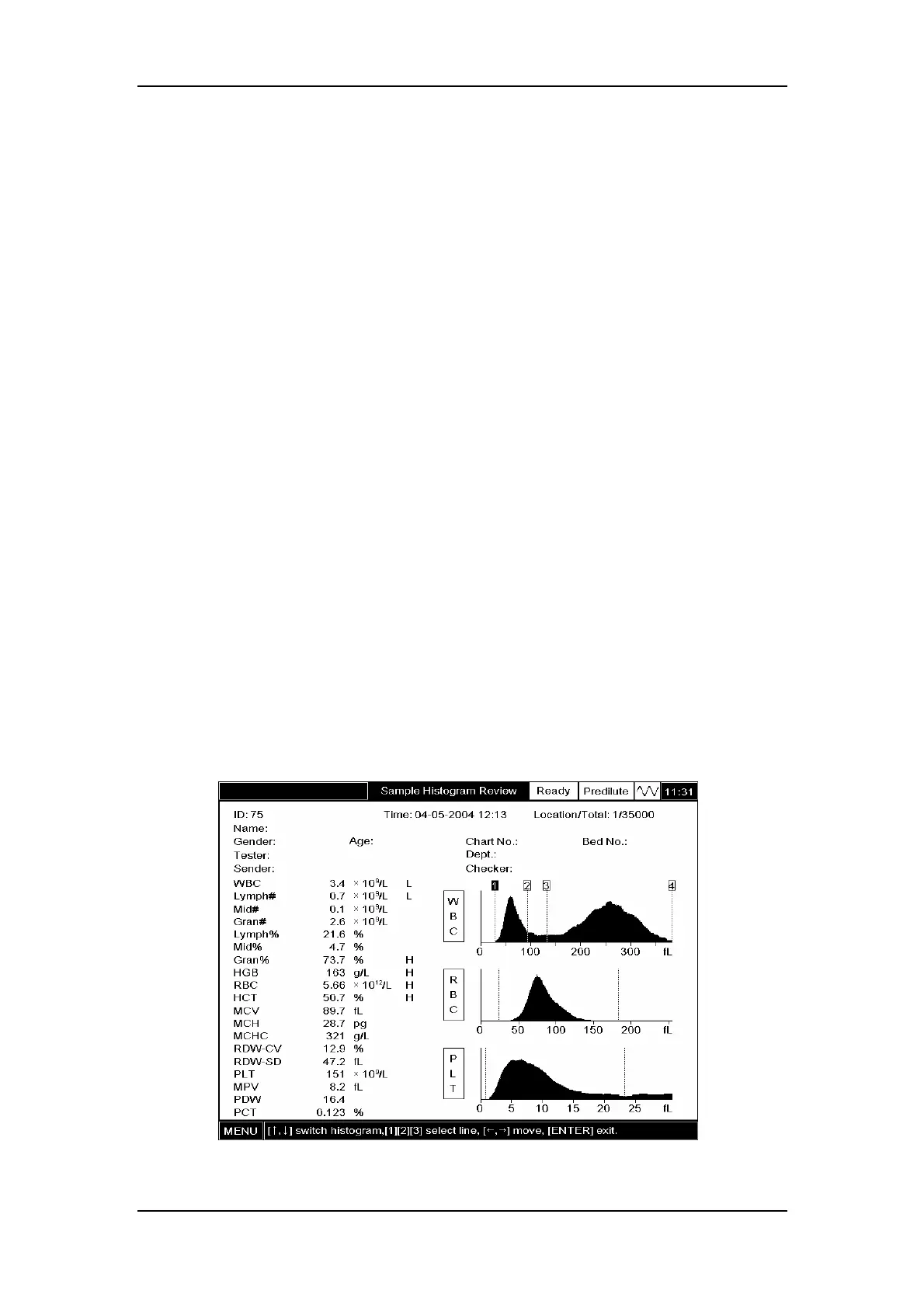 the PLT histogram are adjustable. Note that if the PLT result is less than 10 or non-numeric
