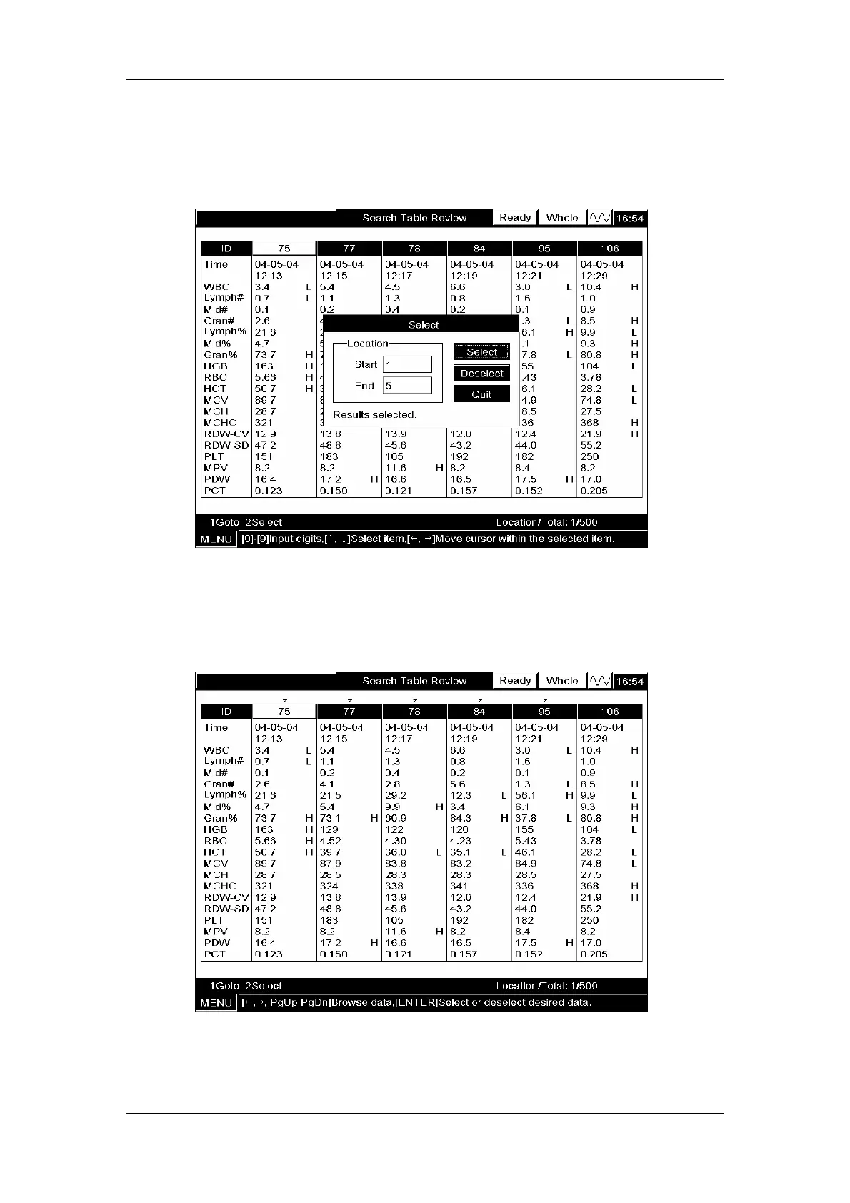 Figure7-36 Selecting sample results of locations 1- 5