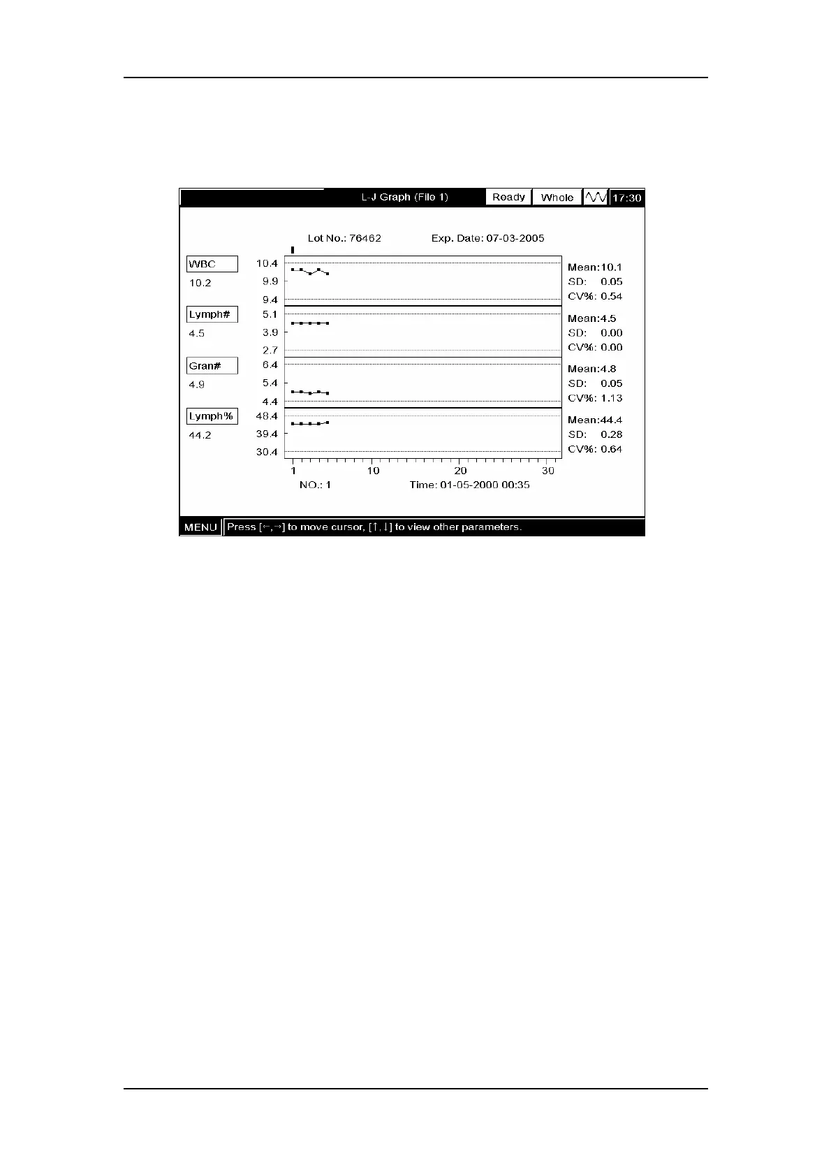8-10 to Figure 8-12 show. The saved QC results are sequentially displayed in the L-J graph,
