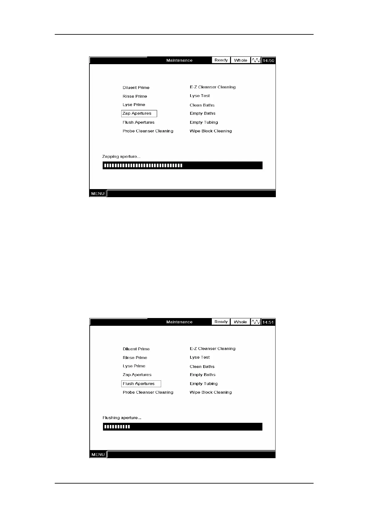 At the “Maintenance” screen, SELECT “Flush Aperture” to flush the aperture and the