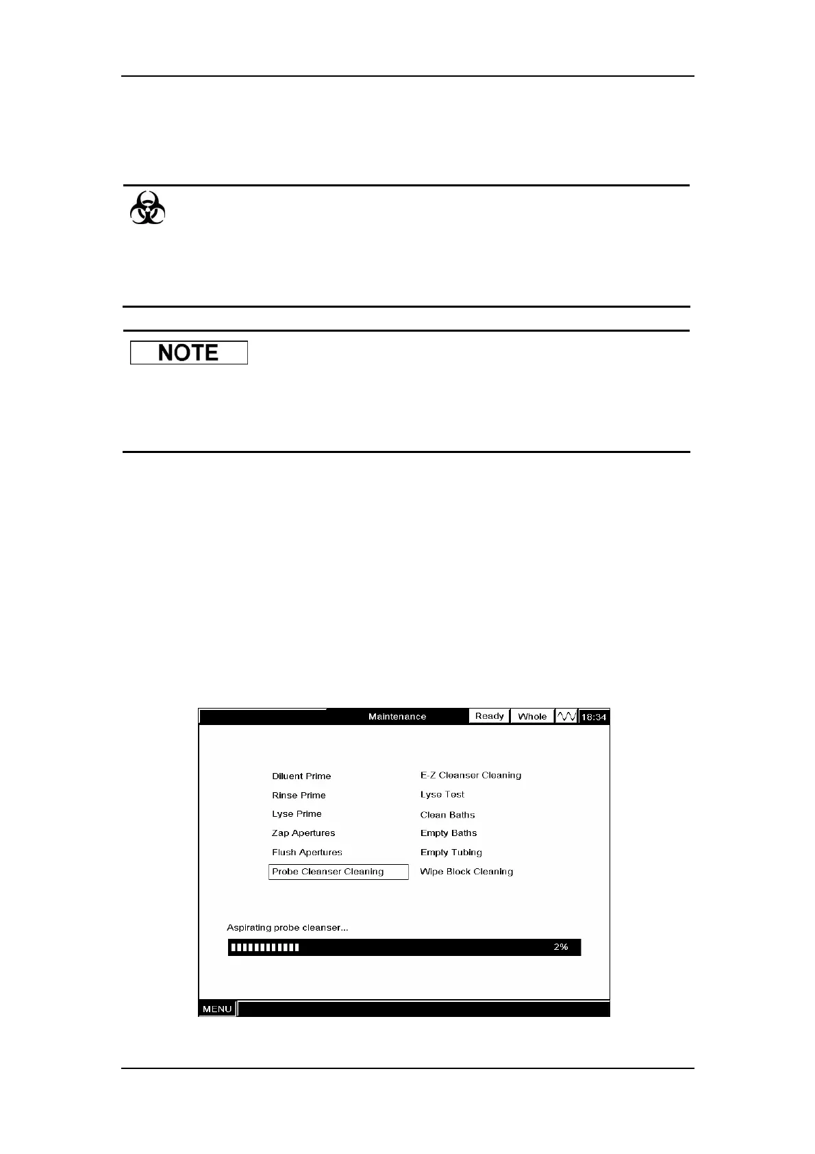 1. At the “Maintenance” screen, SELECT “Probe Cleanser Cleaning”.