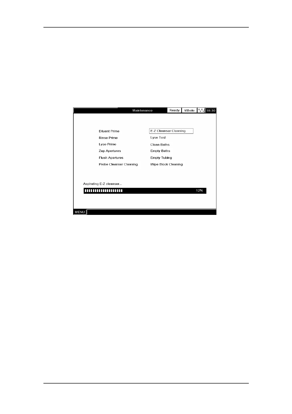 aspirated cleanser and the progress is displayed on the screen, as Figure10-12
