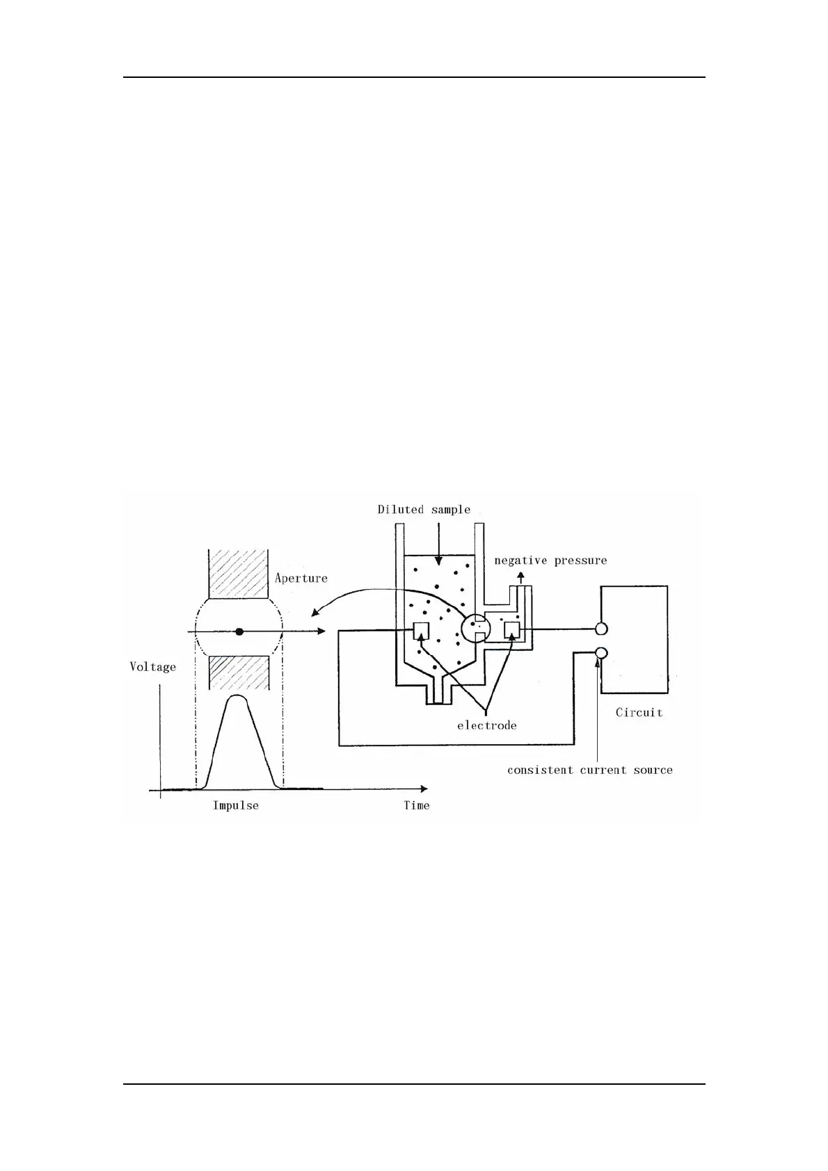 electrical pathway. As each particle passes through the aperture, a transitory change in the