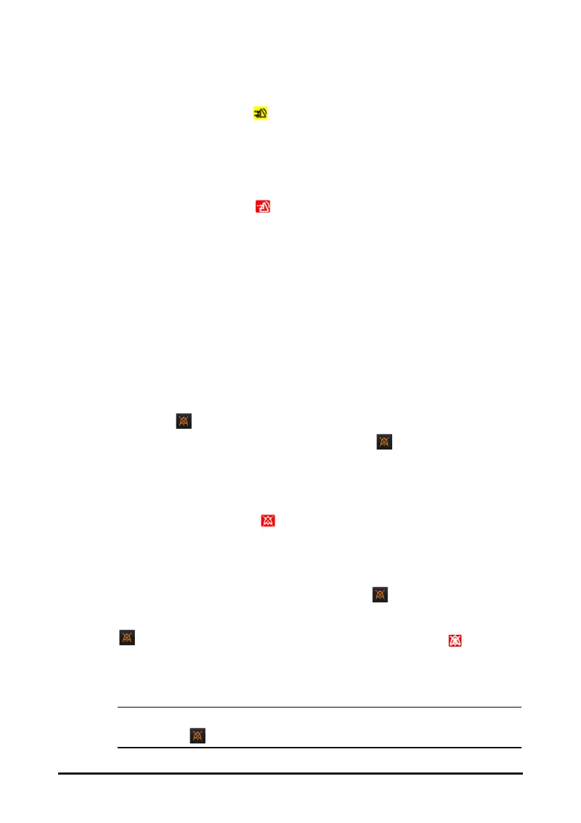 • Except for the Battery Depleted alarm, the sounds of all alarms are paused by