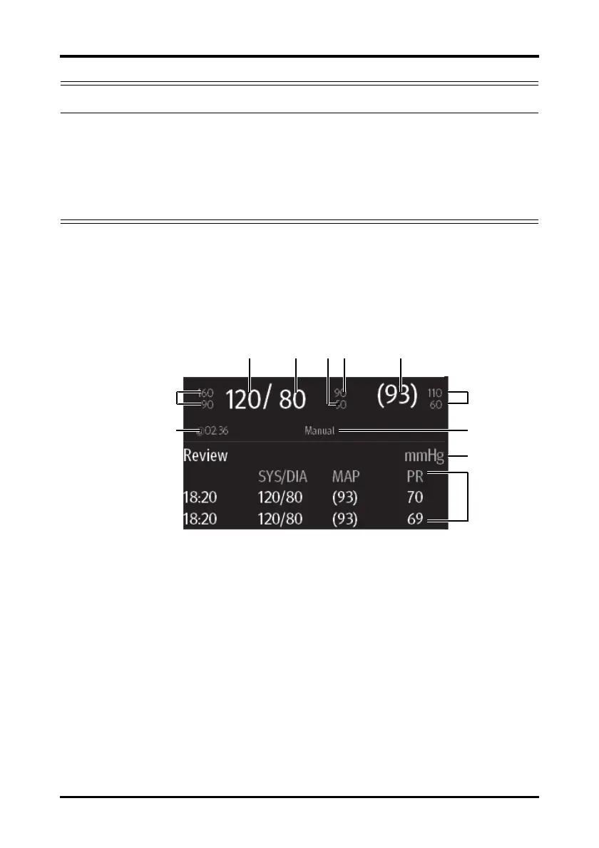 11. NIBP measurement history area: displays NIBP measurement history information.
