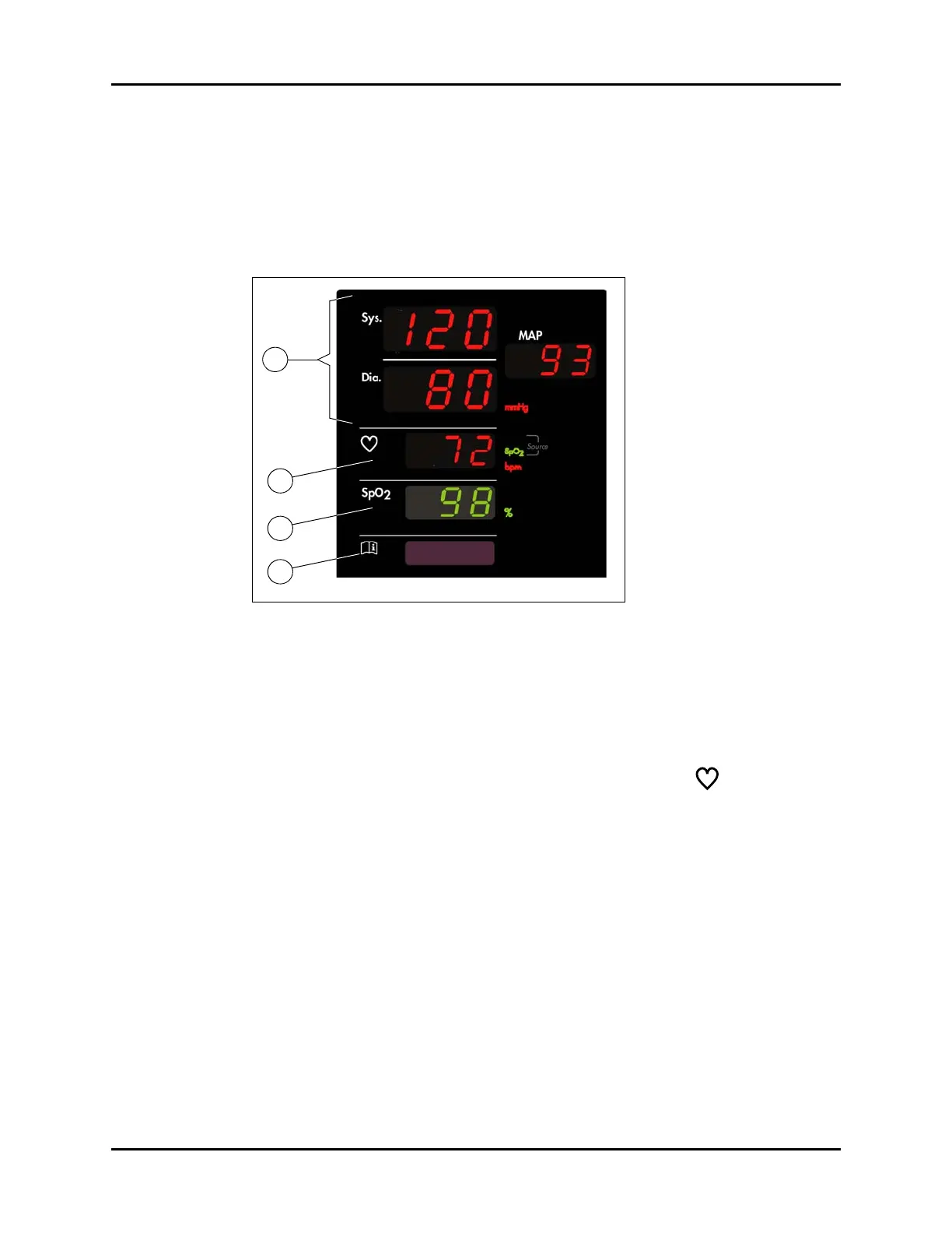 (systolic), Dia. (diastolic) and MAP (mean arterial pressure). The LEDs are red.