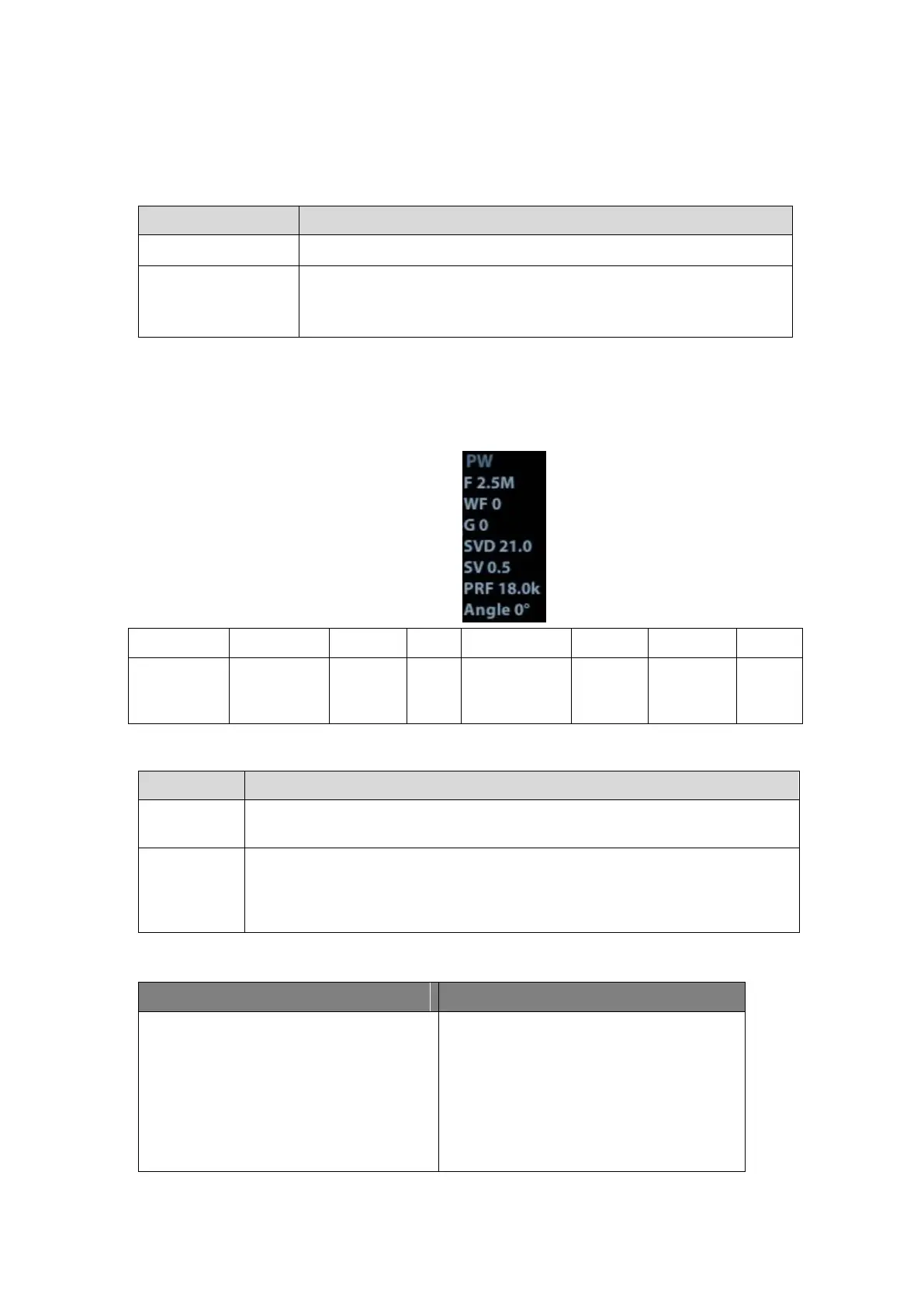 In PW Mode scanning, the image parameter area in the right corner of the screen