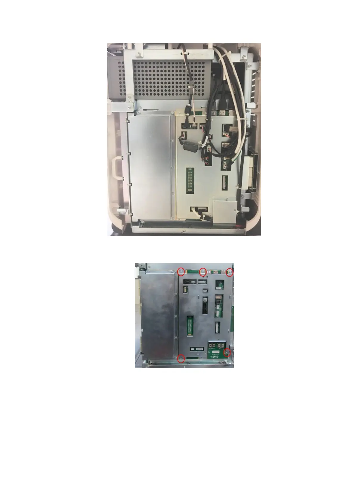 6. Unplug the cables on the motherboard. Unscrew five M3 X 8 screws to remove the shield of the