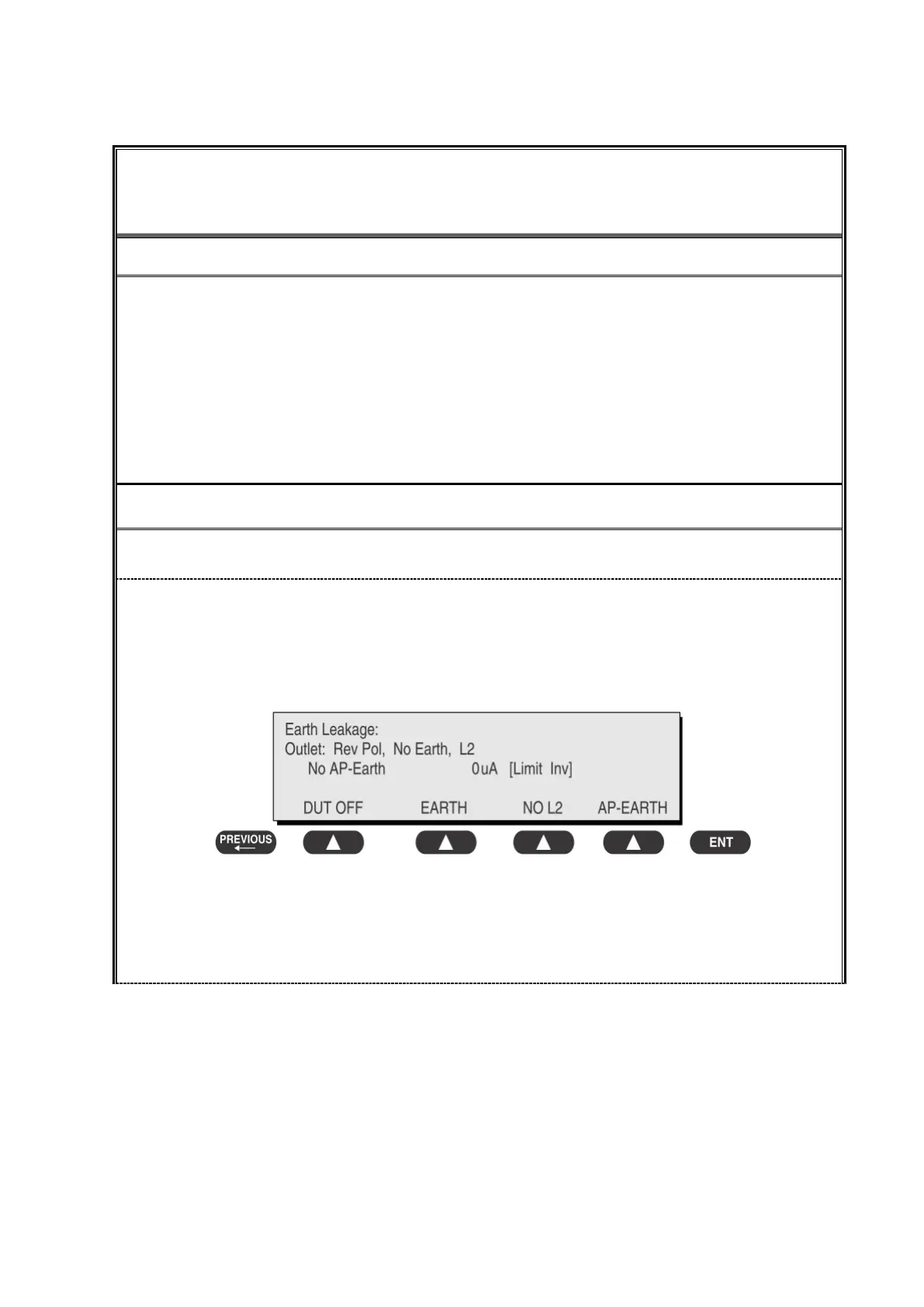 SOFT KEY 2 toggles the DUT outlet from Earth to No Earth.