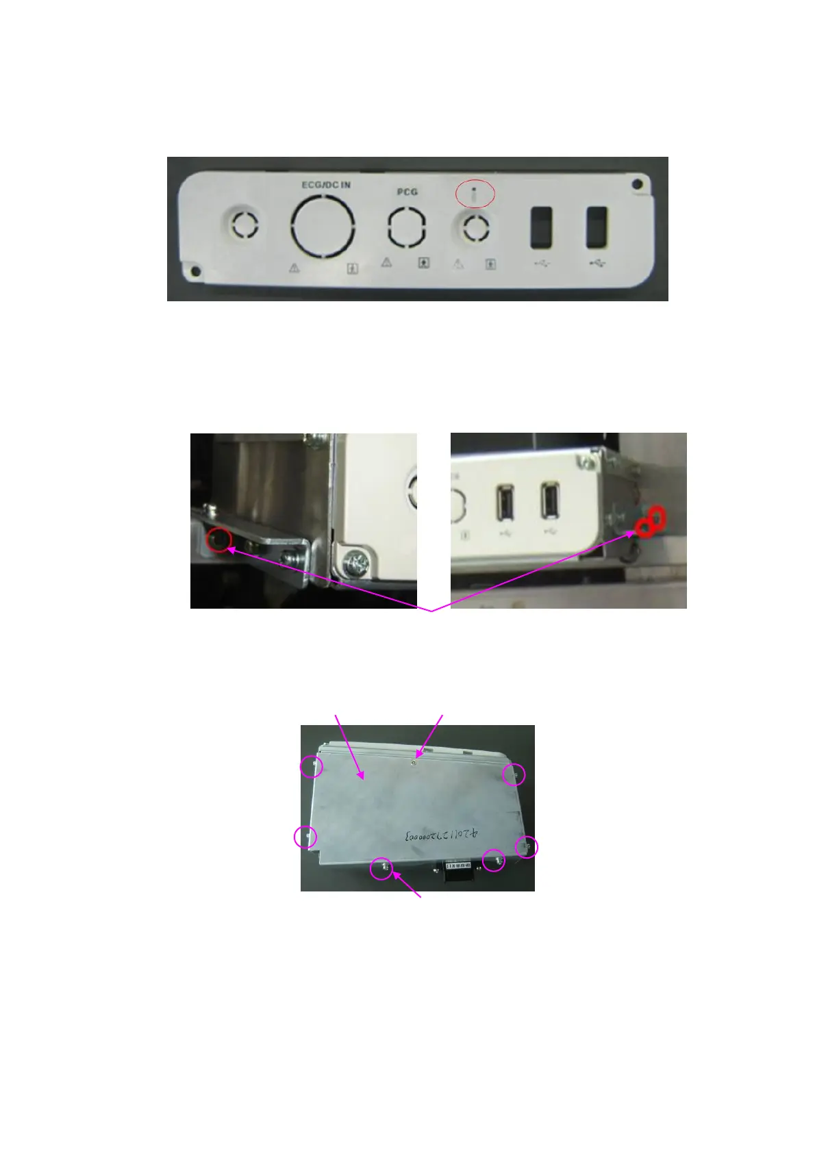 fixing the front board USB&ECG and Pencil Probe Port assembly, grasp and pull out the