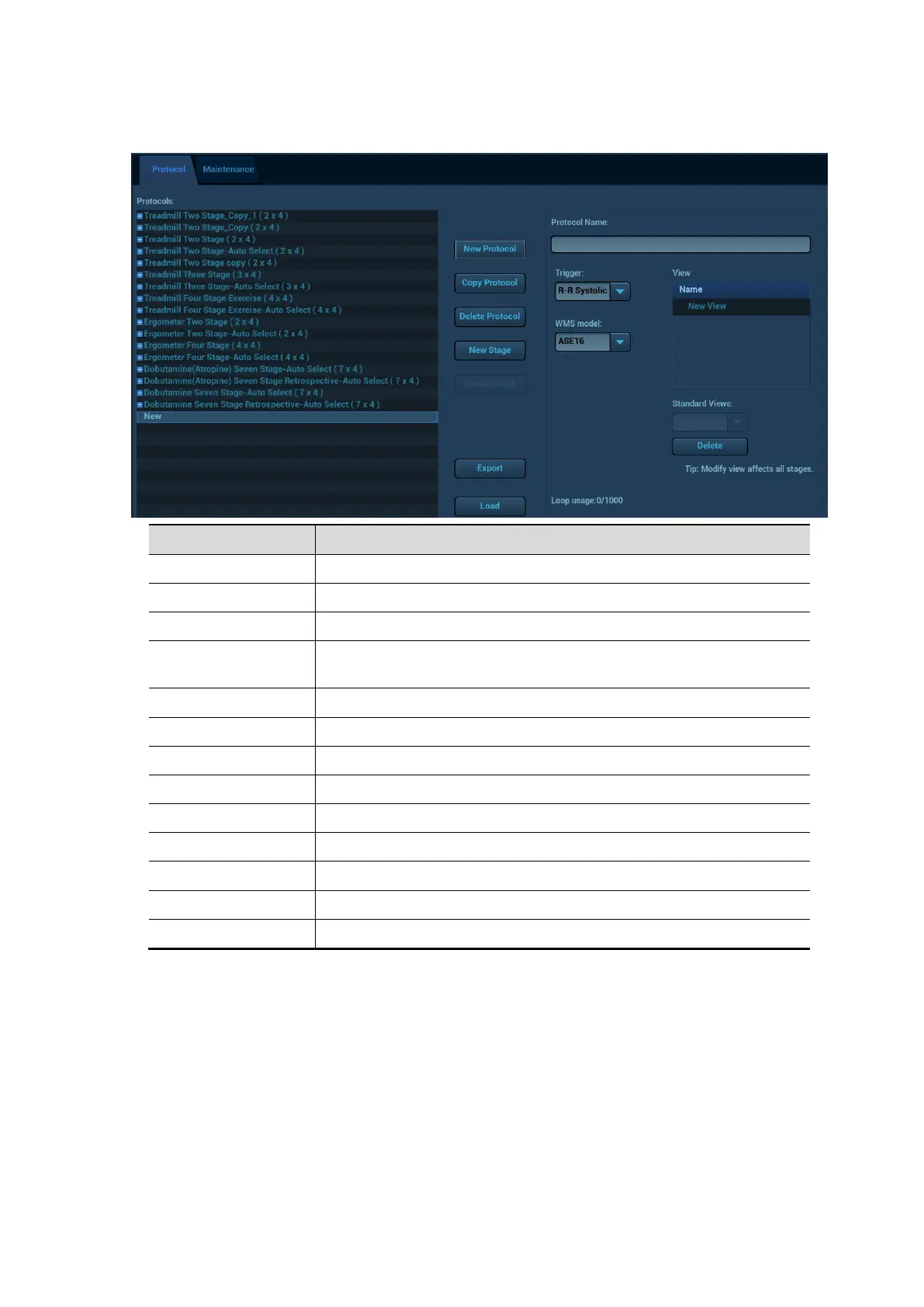 Access the Protocol Editor dialog box by clicking [Protocol] in [Setup][Stress Echo][Protocol],