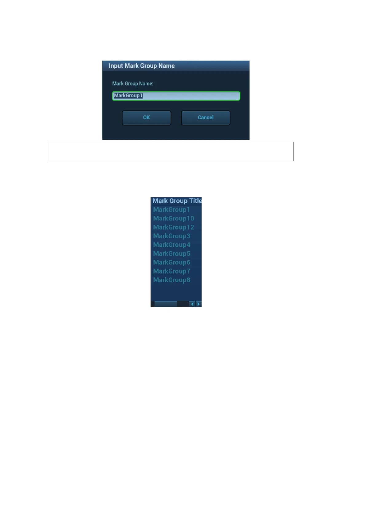 Tap [Load Marks]. All mark groups of previous exams of this patient are displayed. See the
