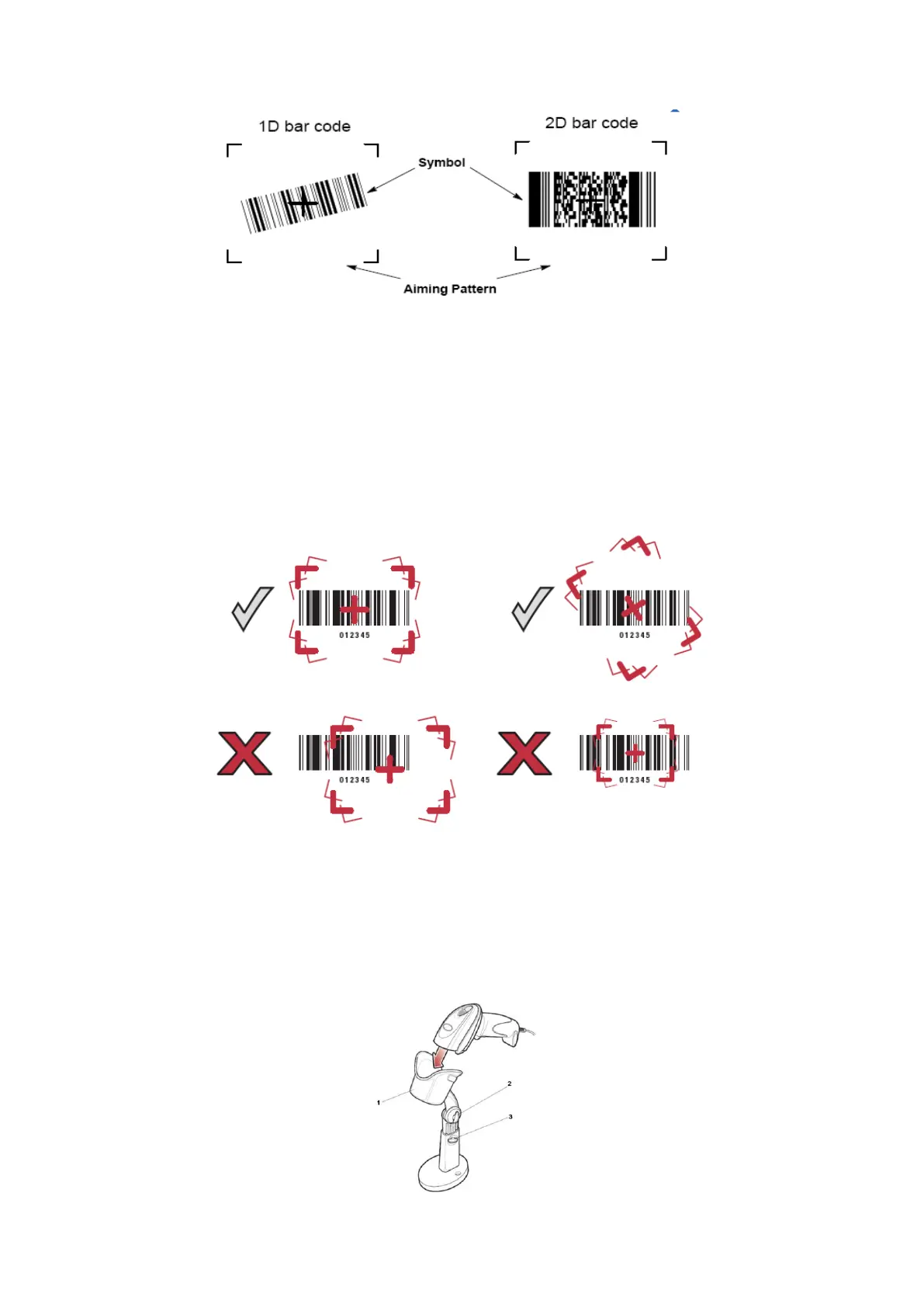 The digital imager reader can also read a barcode presented within the aiming pattern but not centered.