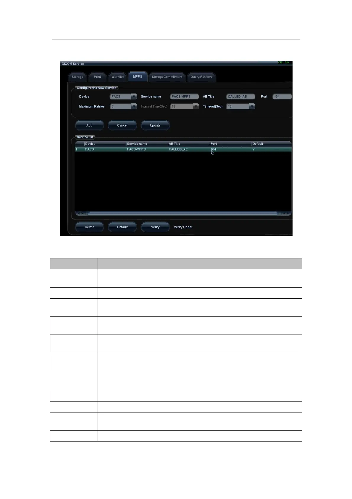 After you set the server (s) in DICOM Server screen, the name (s) will