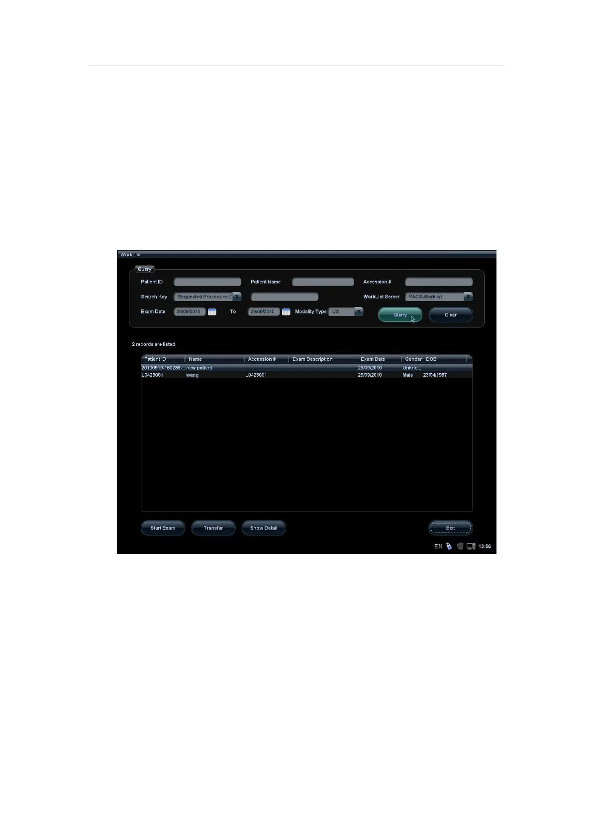 the exam; Click [Transfer] will launch the patient record selected into the Patient