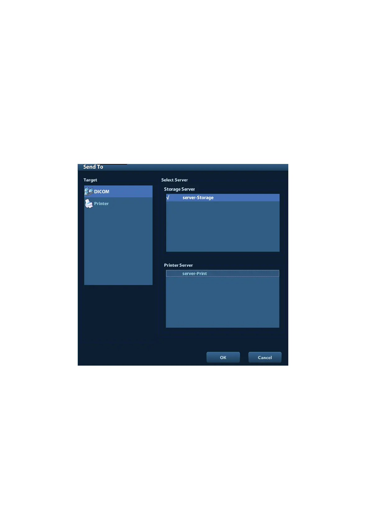 (3) Select DICOM in the “Target” list, select a server in the “Storage Server” list.