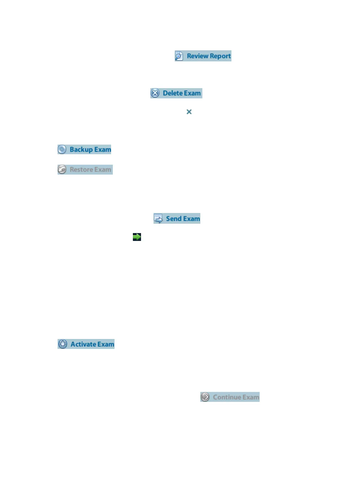 delete patient data being printed, exported or sent, or delete the current exam.