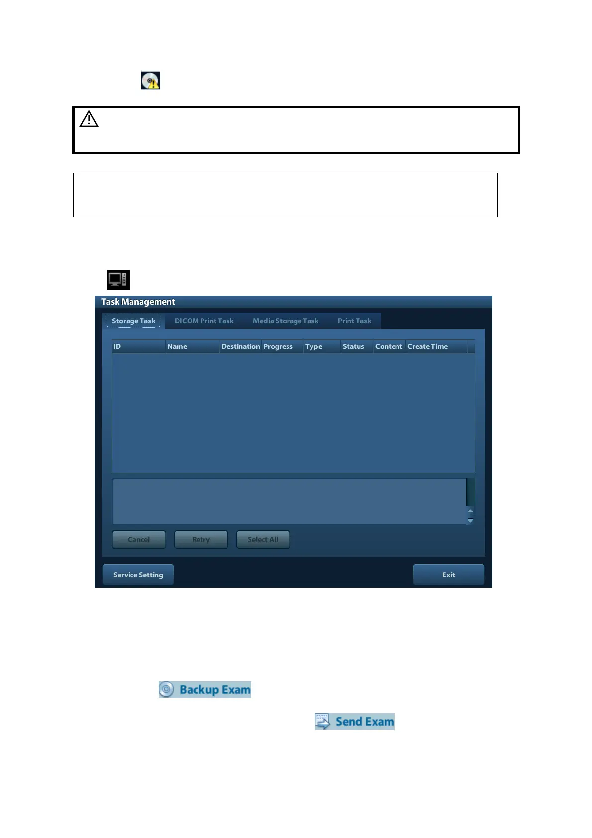 Storage Task: displays the DICOM storage task.