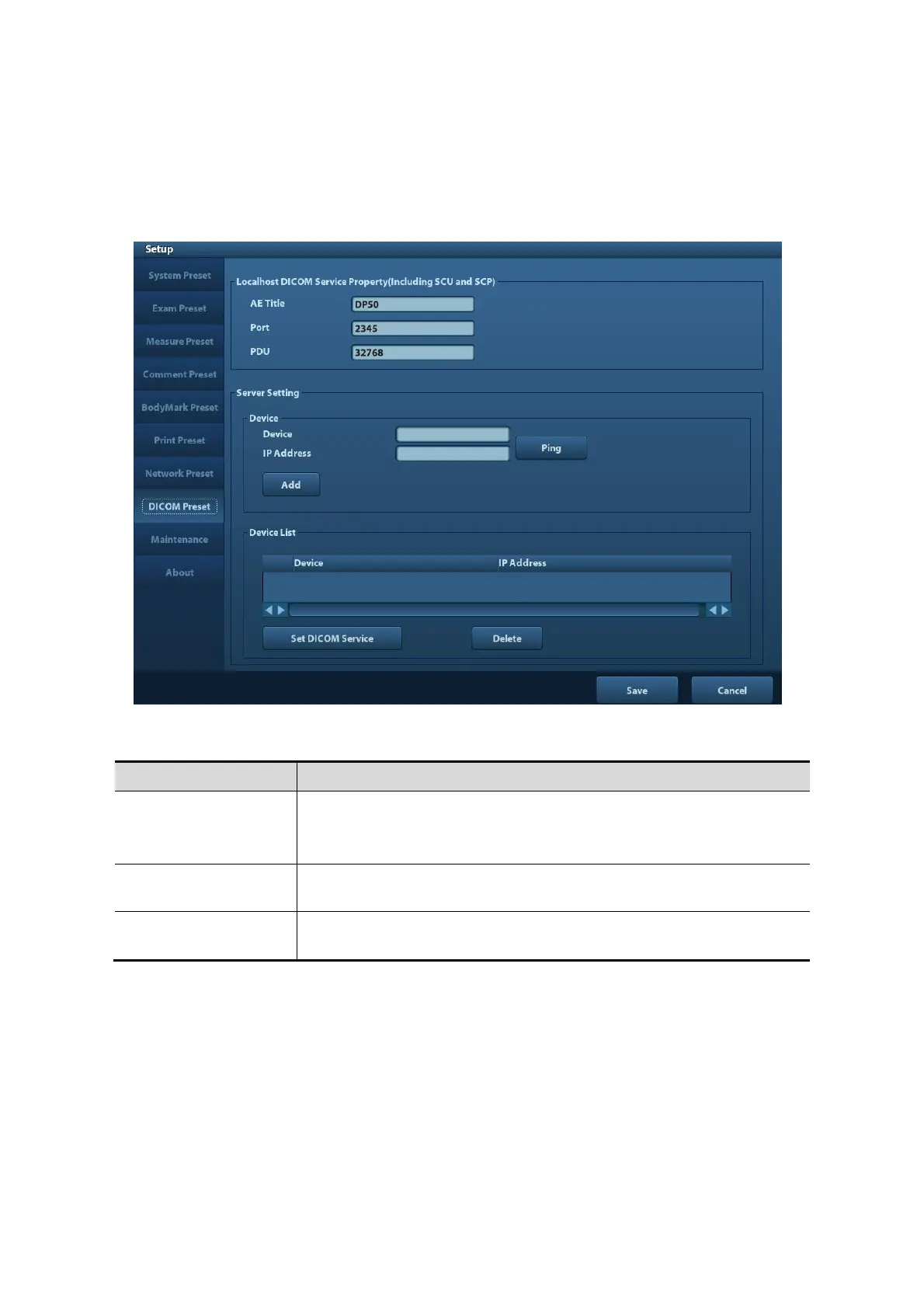 Enter AE Title, Port, PDU according to the actual situation, and then click [Save] to exit the