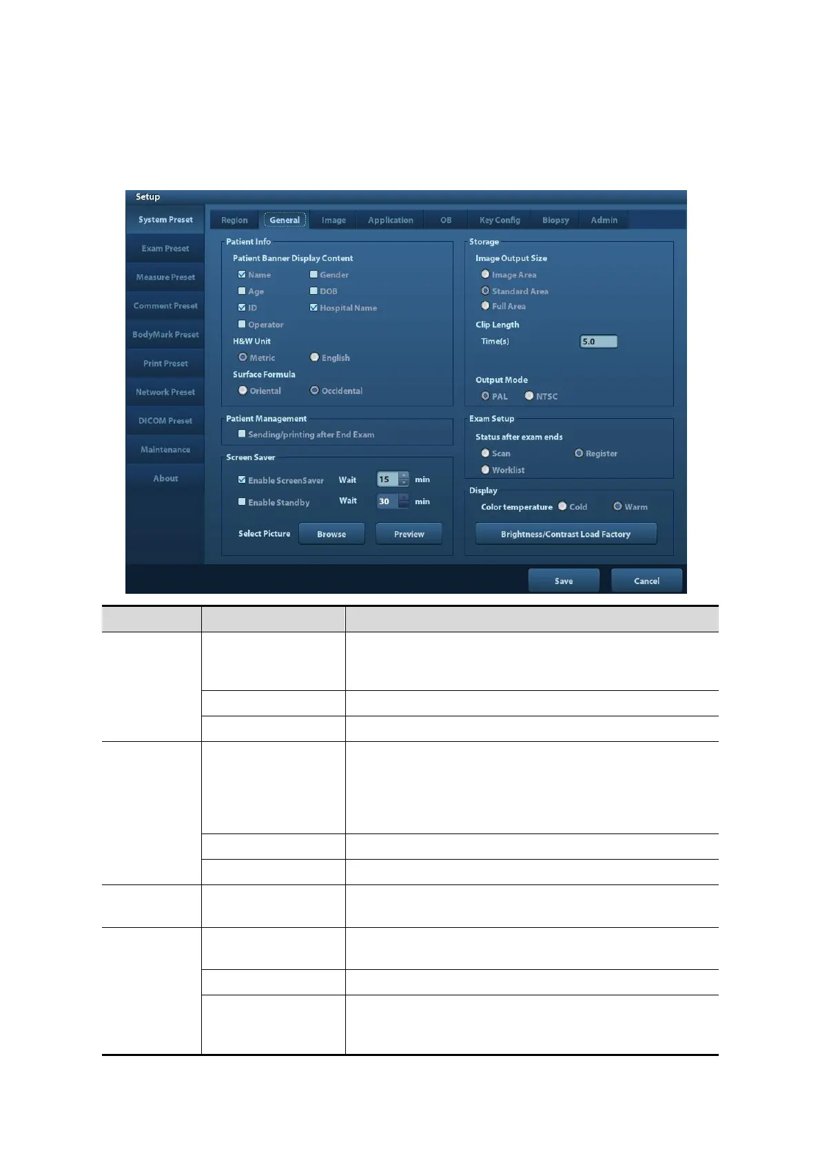 Open the General page via [Setup]-> [System Preset]-> [General], as shown in the figure