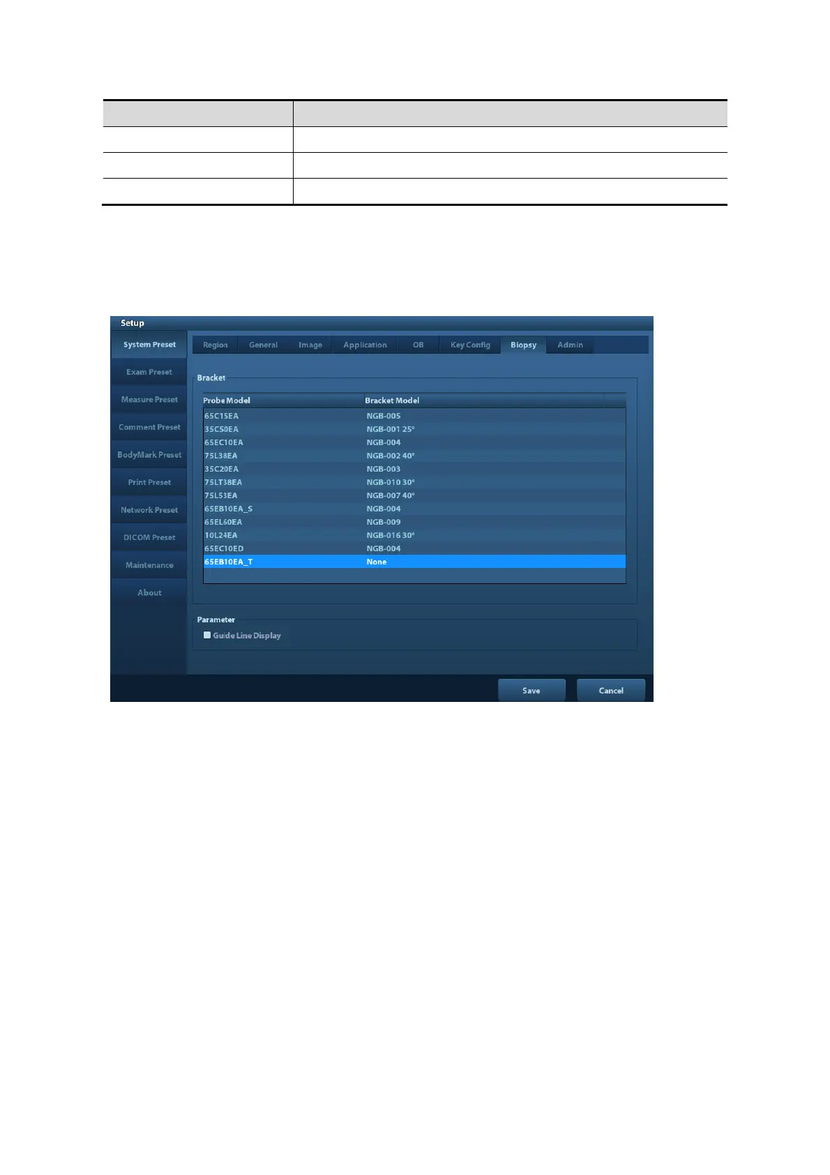 Open the Biopsy page via [Setup]-> [System Preset]-> [Biopsy], as shown in the figure below.