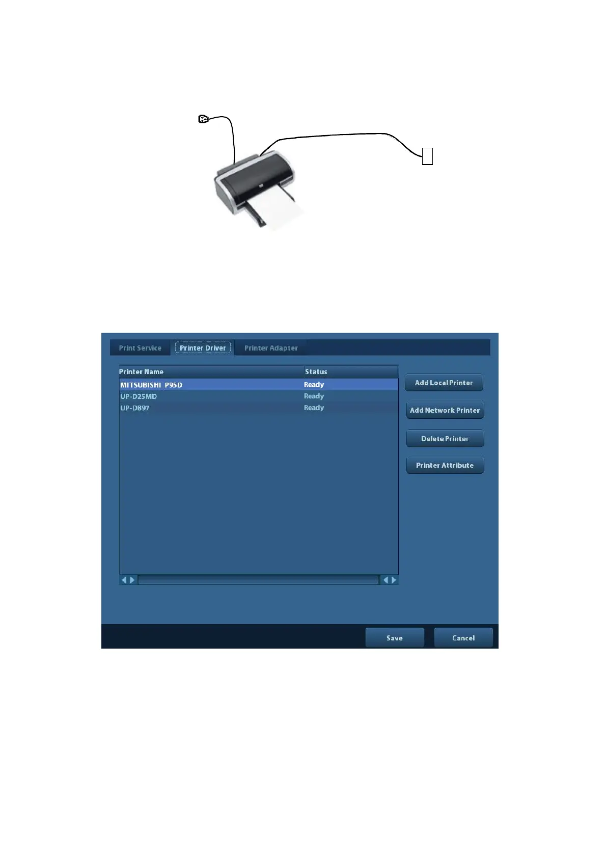 1. Connect the data cable with the USB port on the ultrasound system.