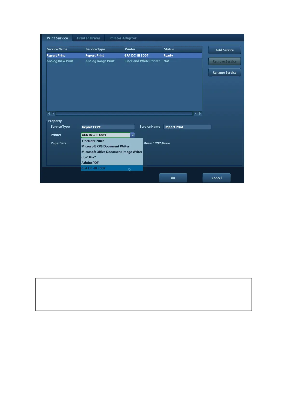 1. Make sure the target network printer and the ultrasound system are both connected into