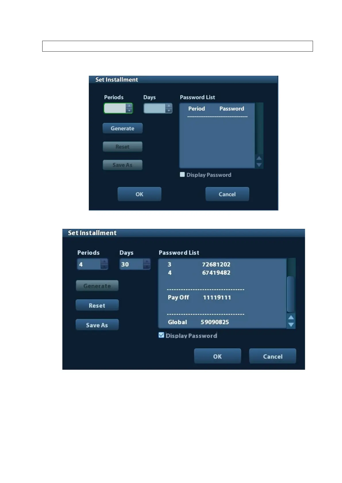 the times of the installment in “Periods” list. Set the time interval of each installment in “Days”